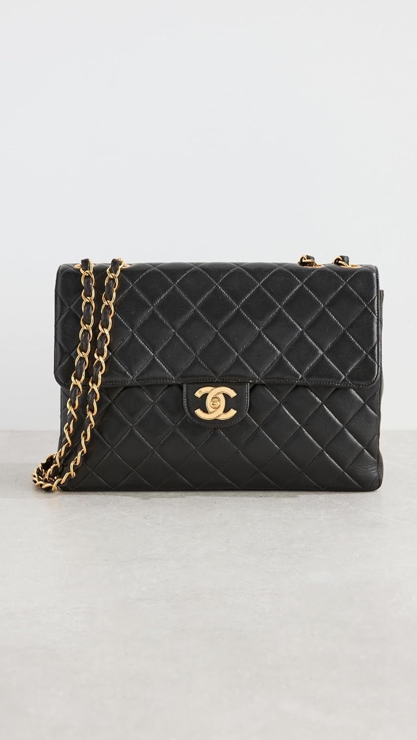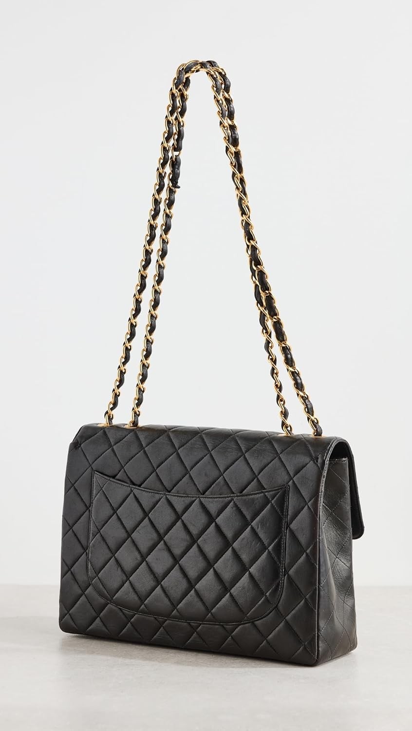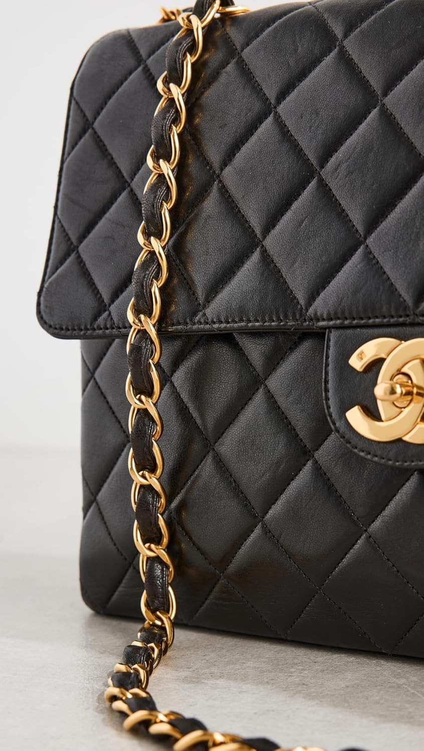 WHAT GOES AROUND COMES AROUND Women's Pre-Loved Chanel Black Lambskin Hal Flap Jumbo Bag