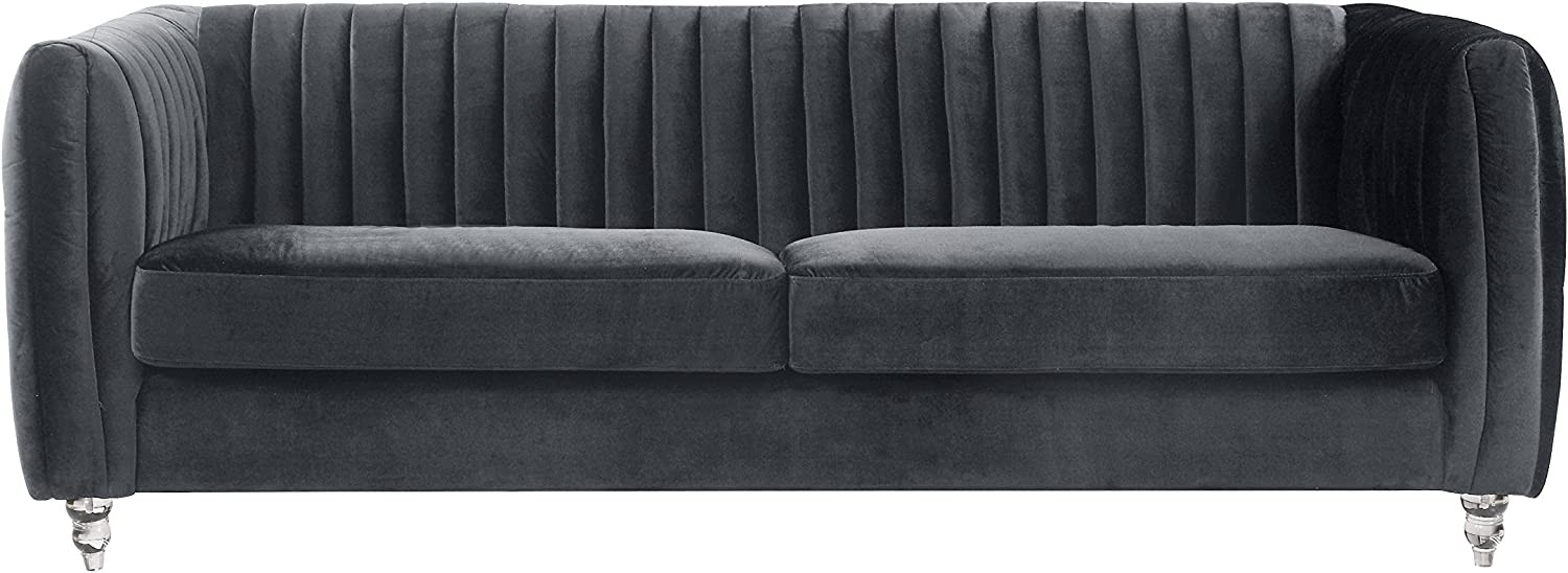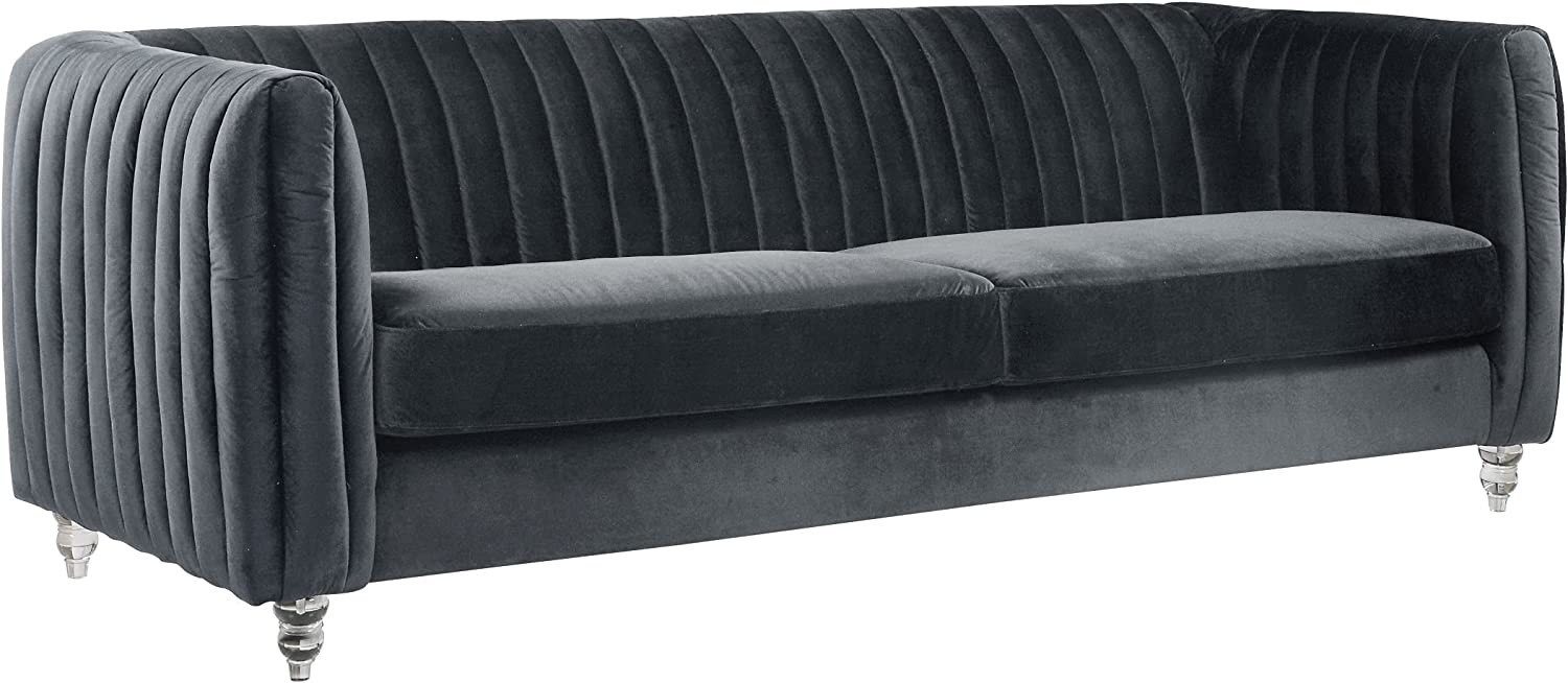 Iconic Home Kent Elegant Velvet Modern Contemporary Plush Cushion Seat Round Acrylic Feet Sofa, Grey