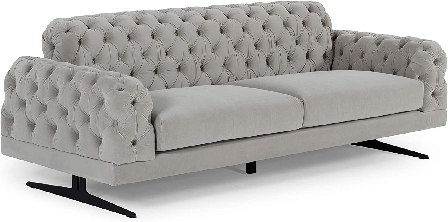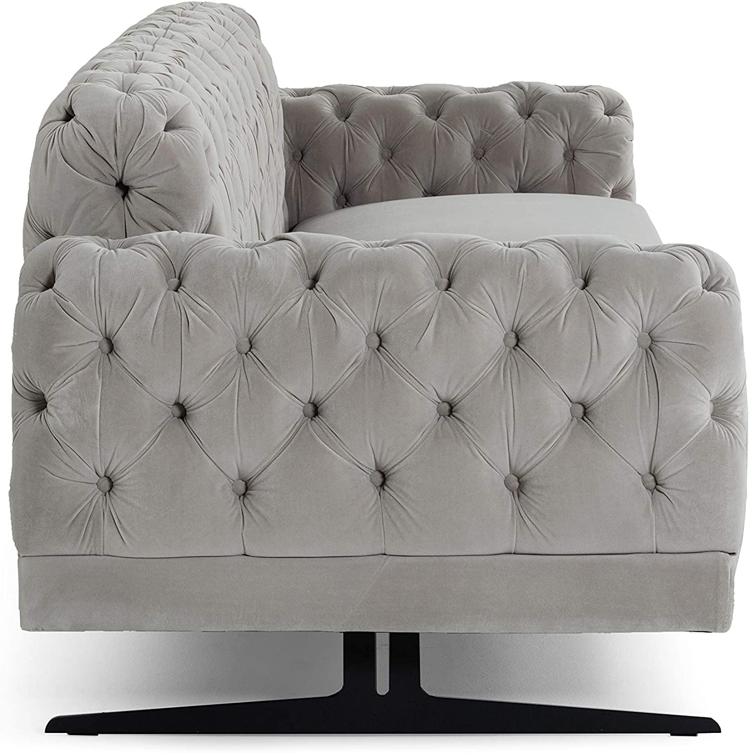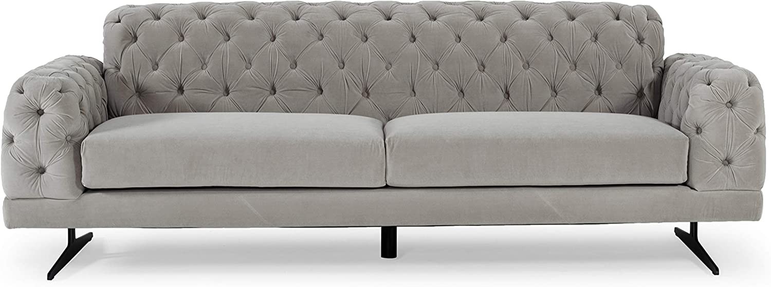 Limari Home Felician Collection Modern Style Velvet Fabric Upholstered Sofa with Drop Arms and Black Metal Legs, Gray