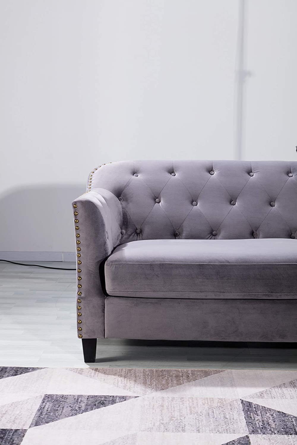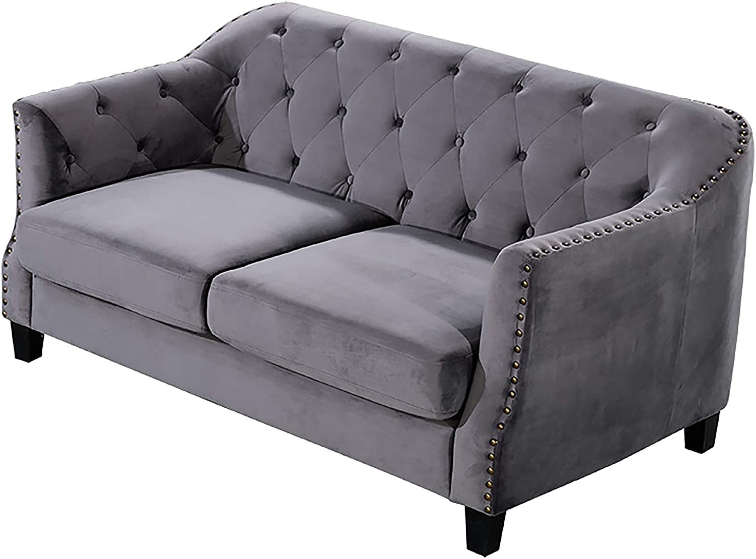 Bring Style to Your Space with the AE-L553 Loveseat by American Eagle Furniture, Featuring a Luxurious Traditional Design and Sumptuous Velvet Upholstery in a Dignified Gray Shade. Loveseat Measures 64" L inch x 36" W inch x 33" H and Weighs 82 lbs. Includes One Loveseat Only. Requires Home Assembly. Expertly Upholstered on a Durable Wood Frame. Traditional-Inspired Diamond Tufts and Rows of Gleaming Nailheads. Features Generously Padded Velvet Upholstery. Perfect for Your Home.