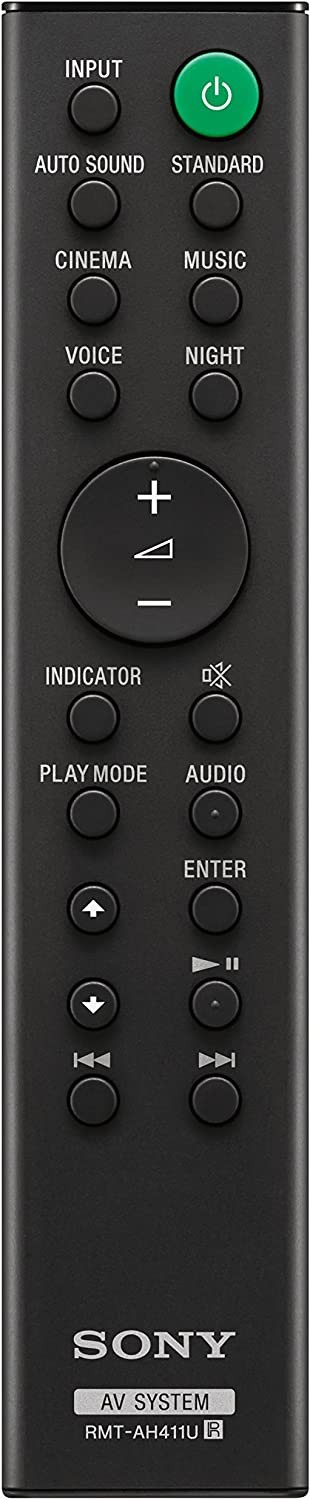 Straight from the theater to your home: easy set-up, built-in tweeter, 2-ch speaker with simple Bluetooth connection Deep sound with Bass Reflex speaker High power with a slim design that matches any room and is perfect for small living spaces Voice enhancement feature is great for TV content with hushed dialogue, or to make conference call participants easier to hear Easy TV set up with HDMI ARC Hear sound come from all around you with S-Force Pro Front Surround In the box: Remote Commander (RMT-AH411U), Batteries for remote commander, Cable (Optical Cable, AC Cord), Wall Mount Template, Warranty Card, Quick Setup Guide, Instruction Manual