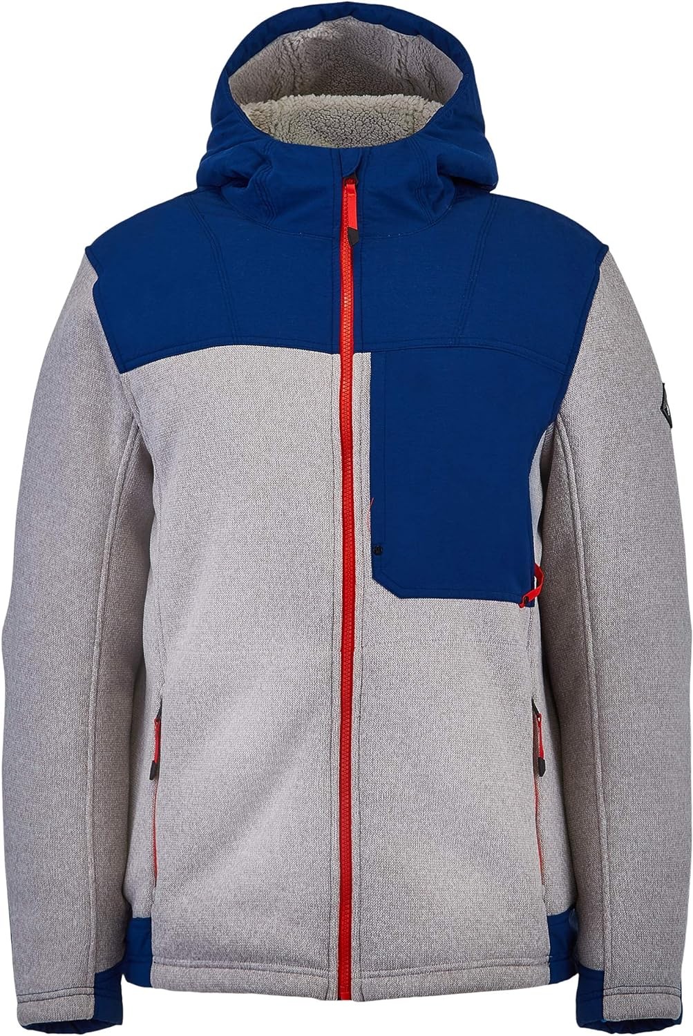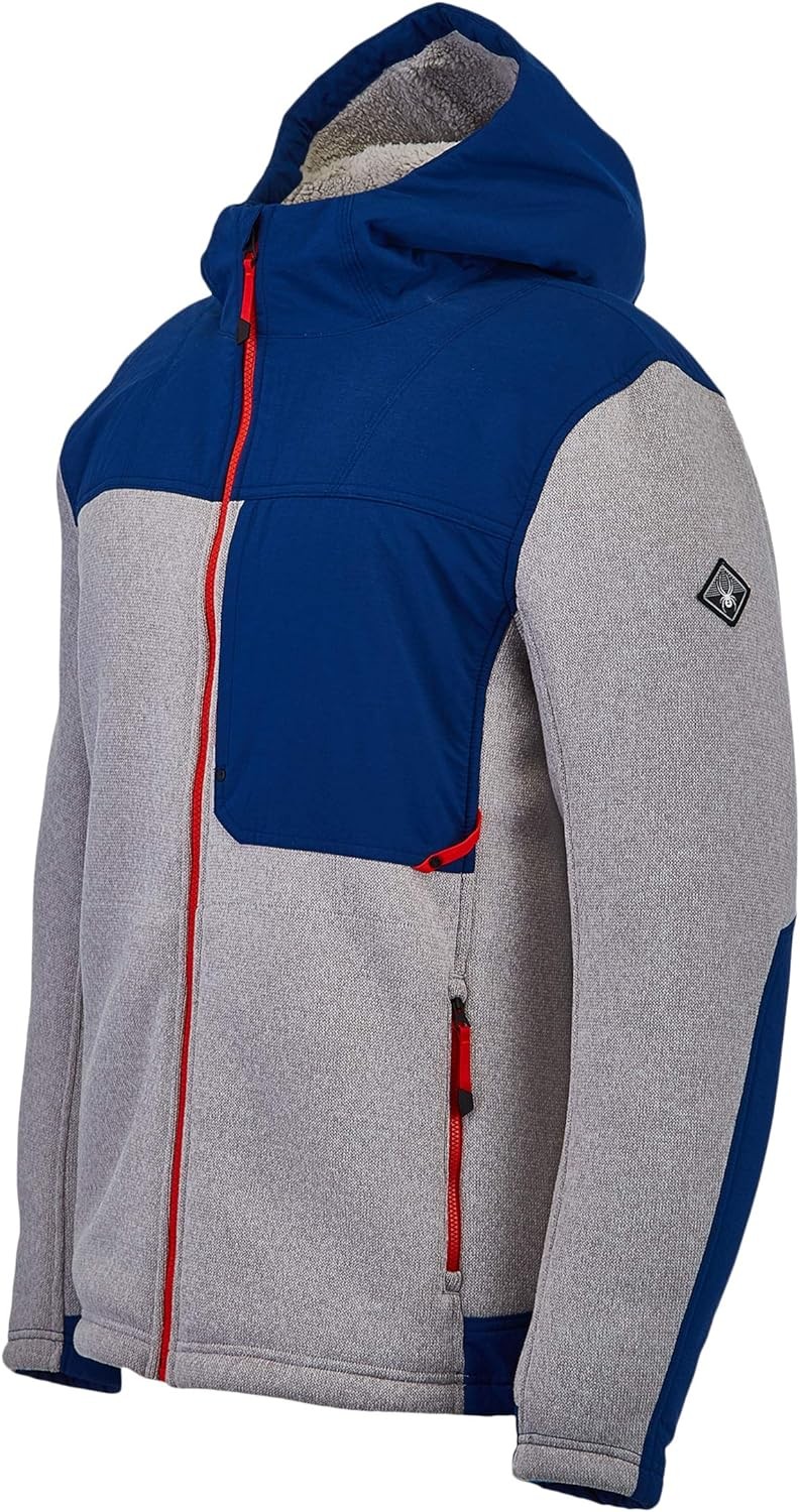 The L fz Hoodie Fleece jacket offers the comfort of a standard fleece equipped with features making it ski ready. Sweater fabric exterior treated with empel DWR improves water Repellency in a sustainable fashion. A Sherpa lined interior adds comfort and warmth while stretch Denim overlays on the shoulders, chest and hood add abrasion resistance where you need it most.