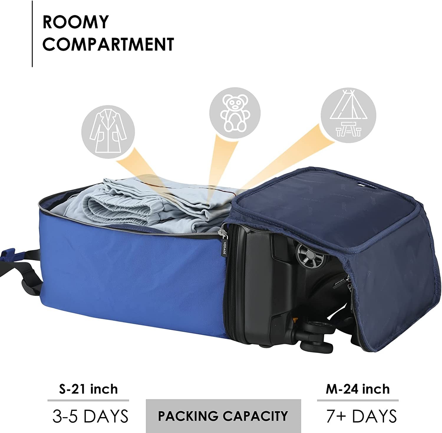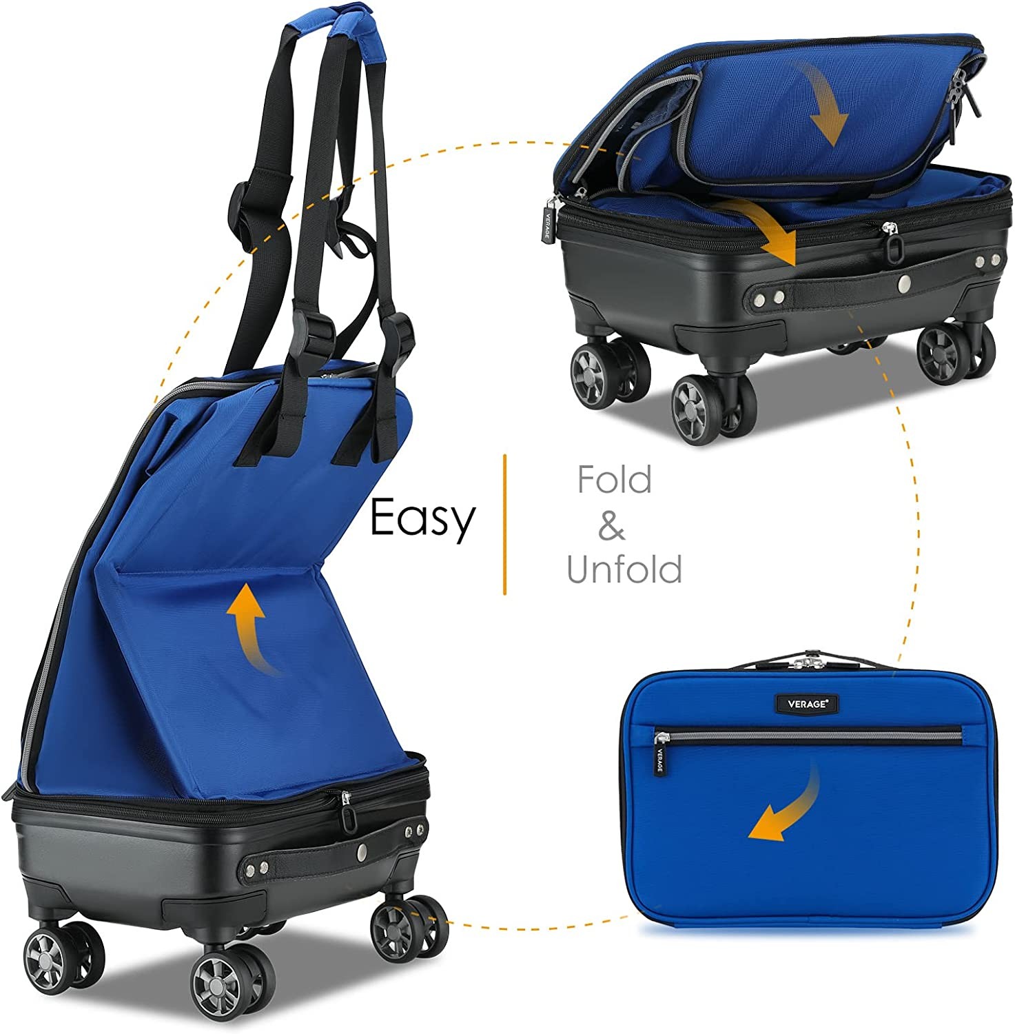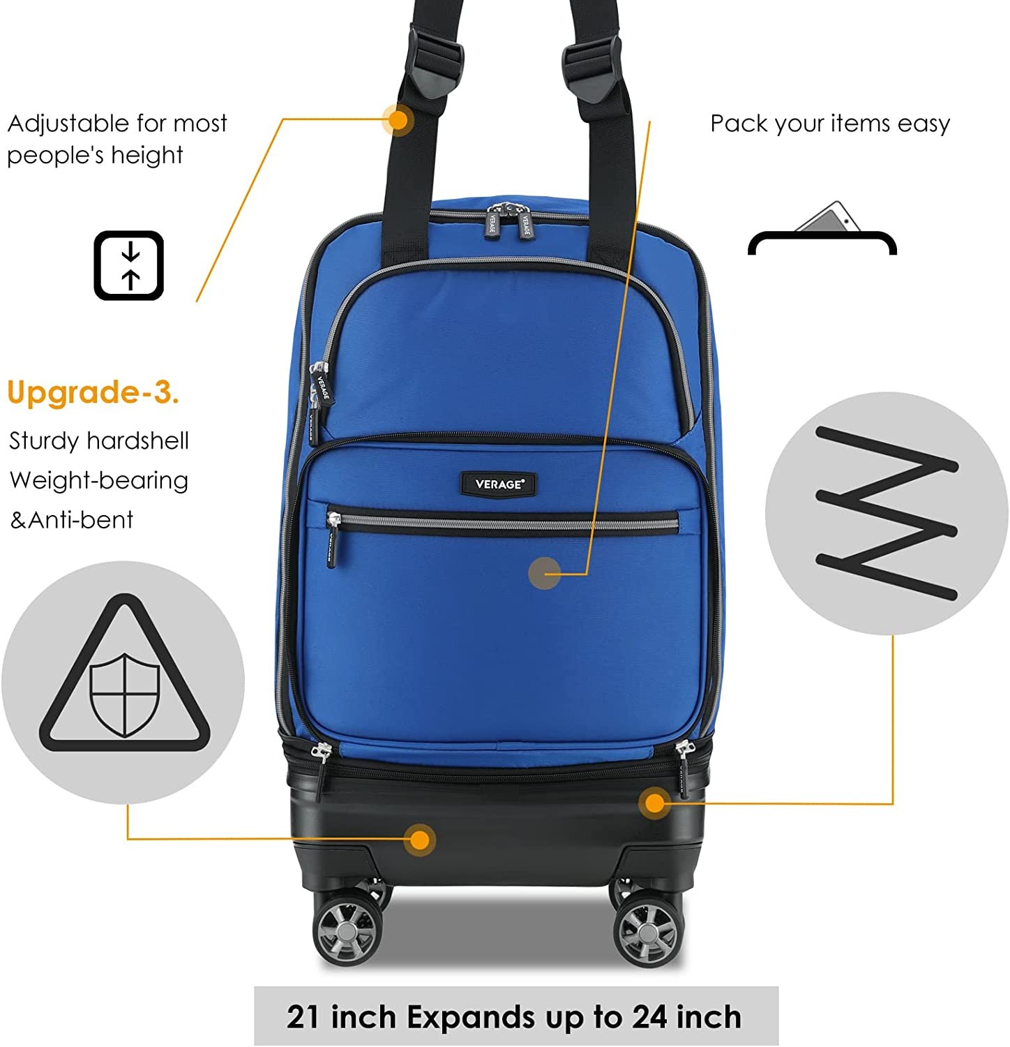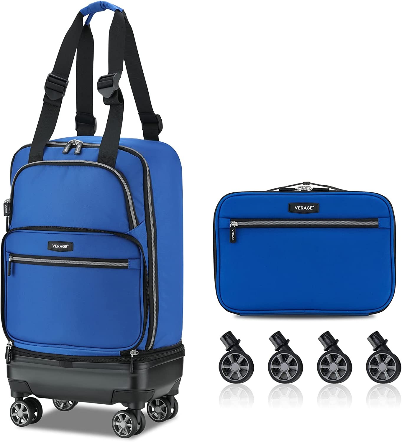 VERAGE Expandable Foldable Luggage Bag Collapsible Suitcases Rolling Travel Duffel Bag Lightweight Suit Case with Detachable Spinner Wheels(Blue,21 Inch Expands into 24 Inch)