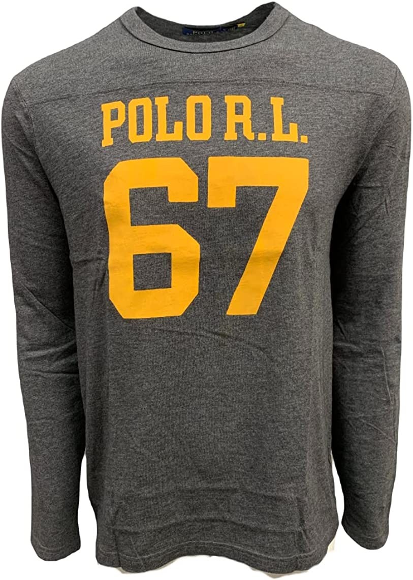 POLO RALPH LAUREN Mens Screened 67 Logo Jersey Long Sleeve T-Shirt (S, Grey Heather)