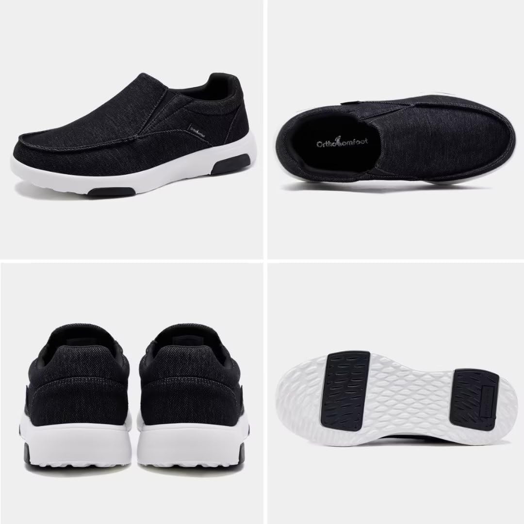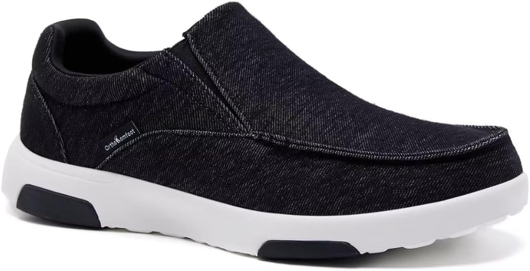 OrthoComfoot Comfortable Orthopedic Mens Slip On Loafers, Arch Support Boat Shoes for Extra Cushioning and Pain Relief, Canvas Breathable Plantar Fasciitis Walking Shoes