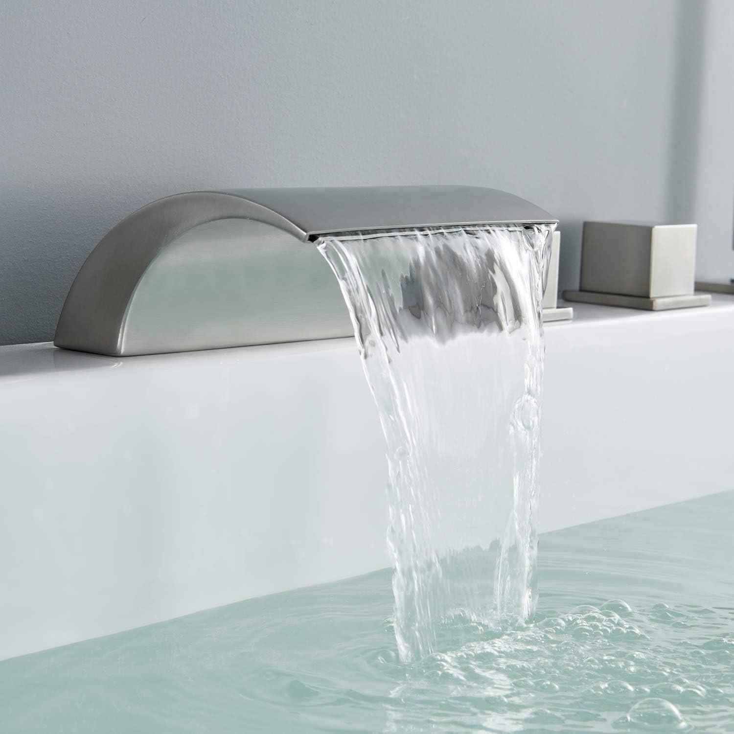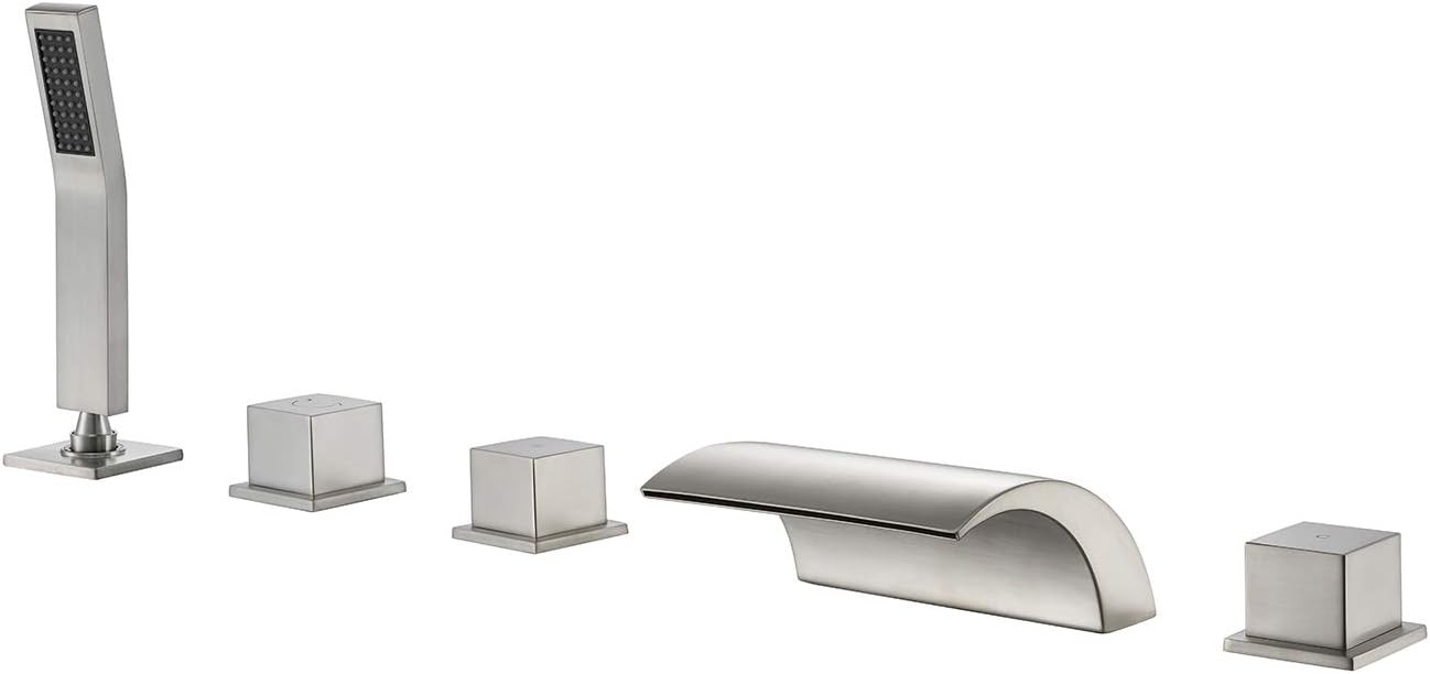 Hanallx Roman Tub Filler Waterfall Tub Faucet Brushed Nickel Deck Mount Bathtub Faucets Brass Bathroom Faucets with Handheld Shower
