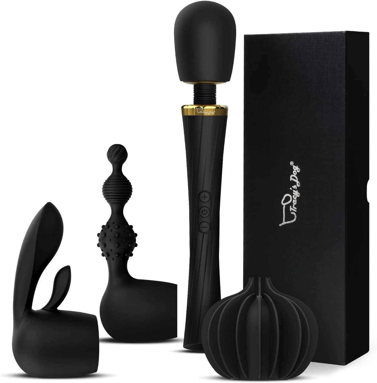 Tracy's Dog Wand Vibrator Kits for Couple, Vibrating Wand Adult Toys with 3 Attachments for Clitoral G Spot Anal Stimulation, Cordless Powerful Sex Toy for Women Partner Play with 5 Modes & 3 Speeds