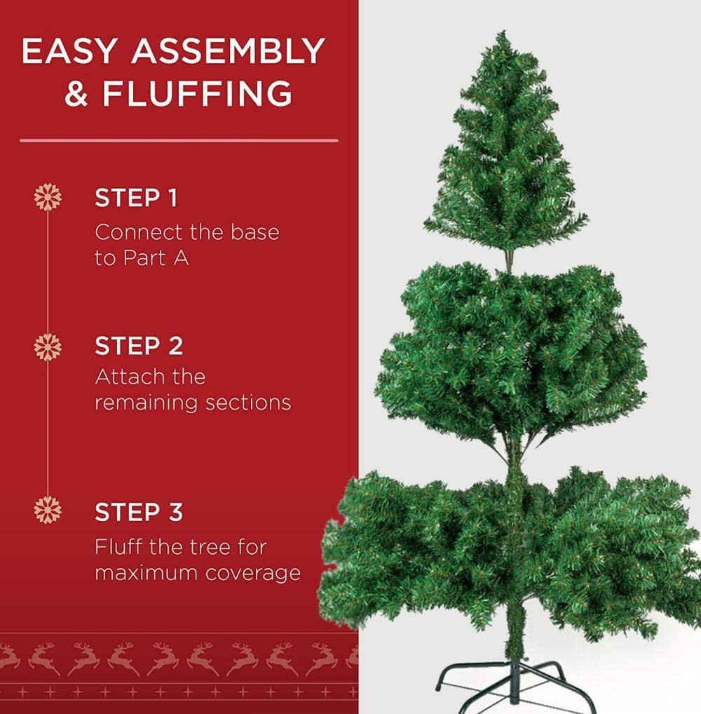 EASY TO ASSEMBLE and LOOSE-Just 3 steps to assemble the tree together: just connect the base to the largest part of the tree, then connect the rest and loosen the branches easily. There are many ways to decorate the Christmas tree, by using garlands , Lighting, decorations, etc. customize your tree to highlight different areas of your living space, office, and even holiday parties!