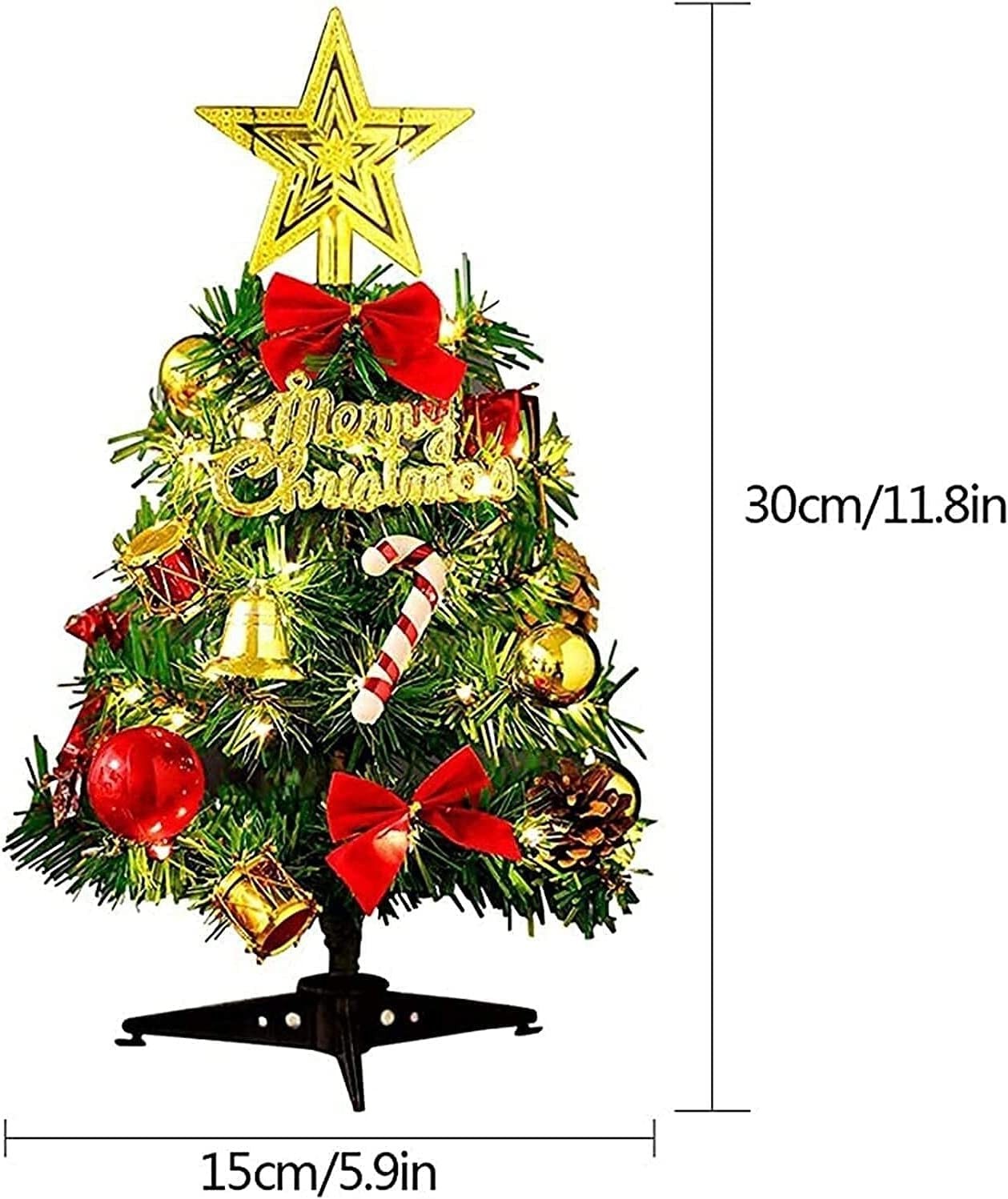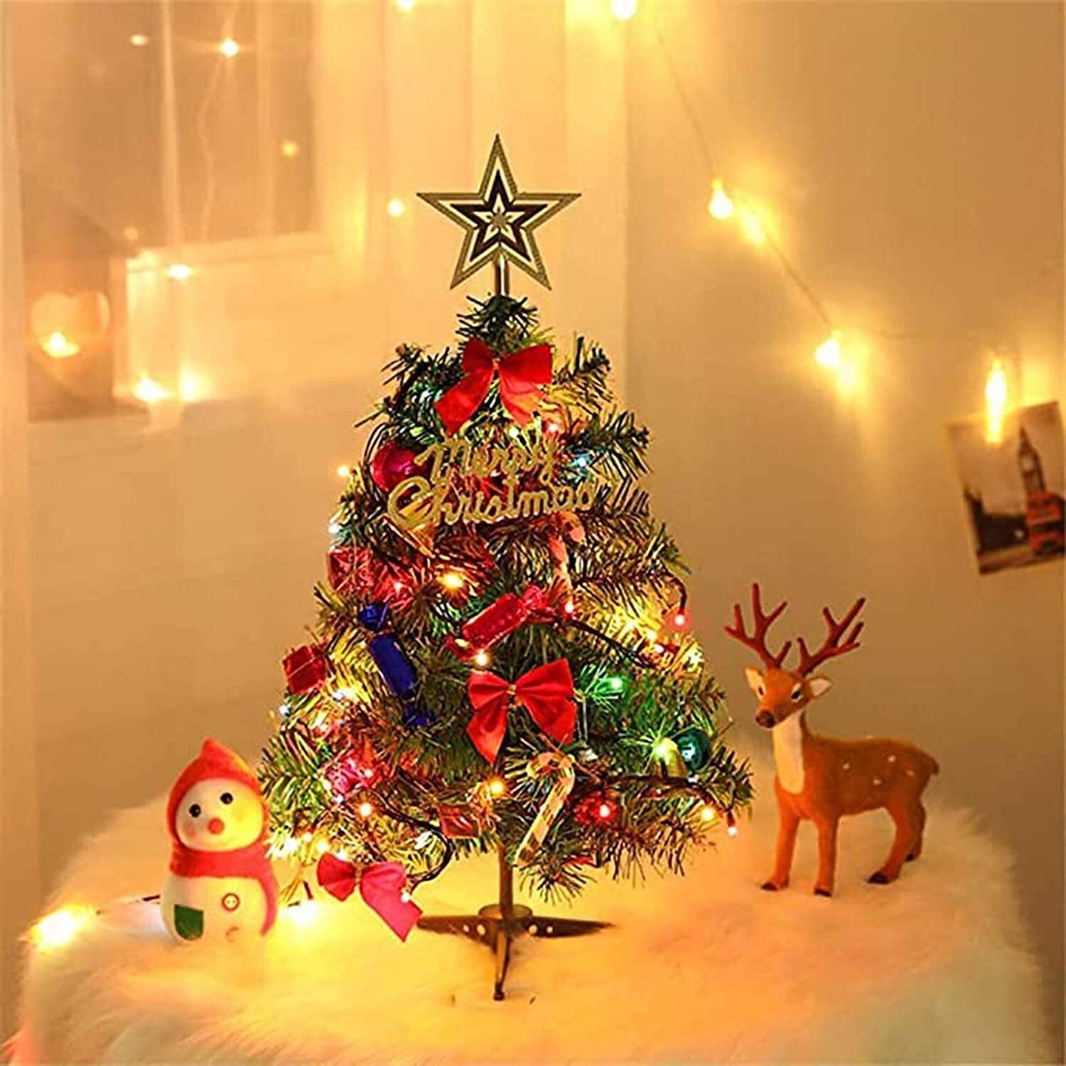 Decorative Lighting for Your : Indoor Fairy Lights perfect for putting around trees, mirrors or anywhere you can think. The bright warm light can add a beautiful glow to any part of your . Artificial Pine Trees: Exquisite Christmas Tree will be perfect for Christmas indoor or outdoor decoration; Miniature assorted village trees, use them to beautify your table. Ideal for hanging your small Christmas decorations with your needs in mind. Mini Shinning Christmas Tree Set: Package included 1pc miniature Tabletop Desk Mini Tree, 2M/2.18 yard wire string lights for decor (Not included 2 x AA Batteries) and many Ornaments. Mini Tabletop Artificial Christmas Tree Ideal for decorating party, make a festive atmosphere 【100% CUSTOMER SATISFACTION GUARANTEE】If you have any questions about our goods, please feel free to contact us , we will reply you within 24 hours, please rest assured to buy any products in Xmas gift: This tree is perfect as a tabletop centerpiece or as a room decoration, It will be the one christmas decoration. It is also awesome gift for your friends, Family.