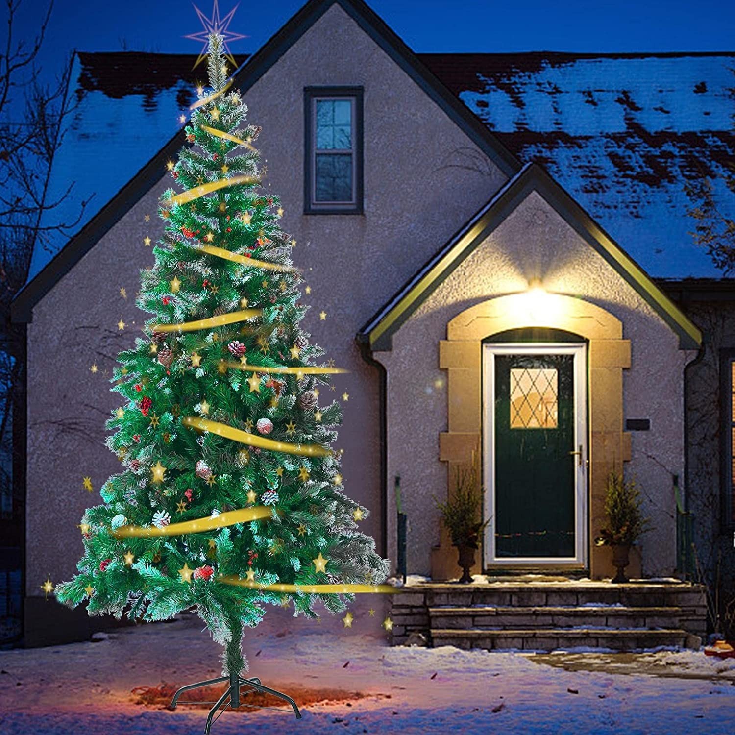 【Eco-friendly Material】The blades of our christmas tree are made from high quality PVC material, anti-deformation,waterproof and suitable for outdoor,allowing you to make the most of it year after year.