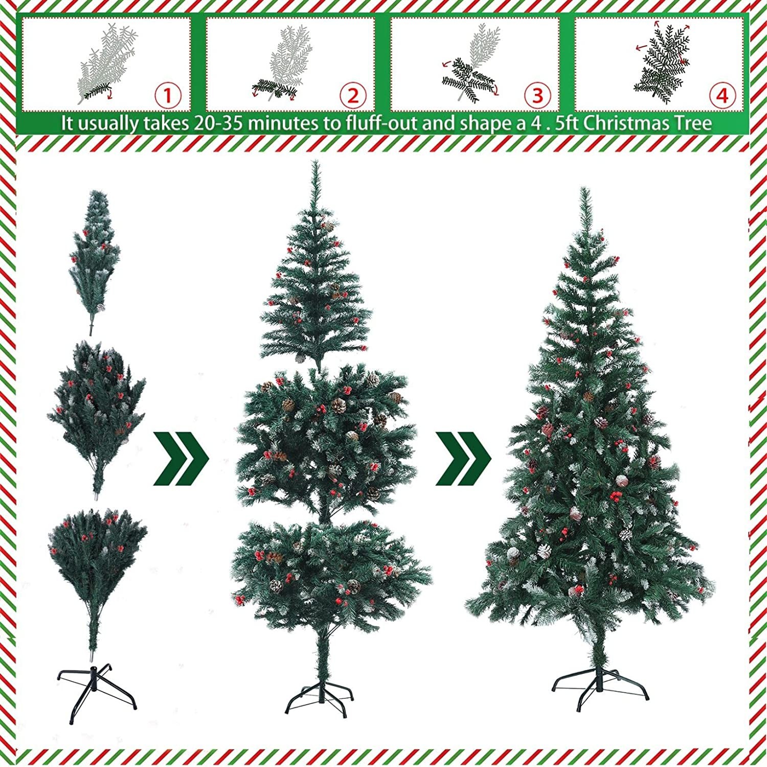 【Quick & Easy Assemble】Assembly and disassemble is quick and easy. And this christmas tree has plenty of space. Shape it at first then you can add other ornaments and gifts.