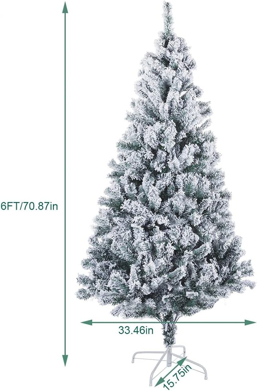 FWBNUIF 6FT Fake Christmas Tree - Chrismas Tree Christmas Tree Christmas Trees with Snow 750 Branch Tips Metal Foldable Stand Flocked Indoor Outdoor Decor