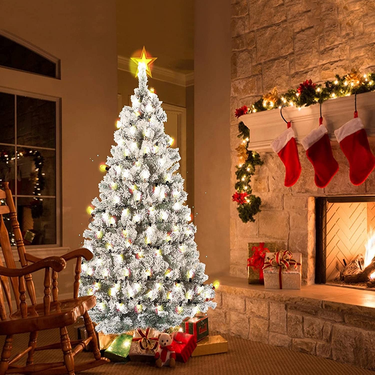 Small Christmas Tree With LightsSnow flocked tree:Realistic powdered snow covers the artificial branches make you feel the winter holiday atmosphere.