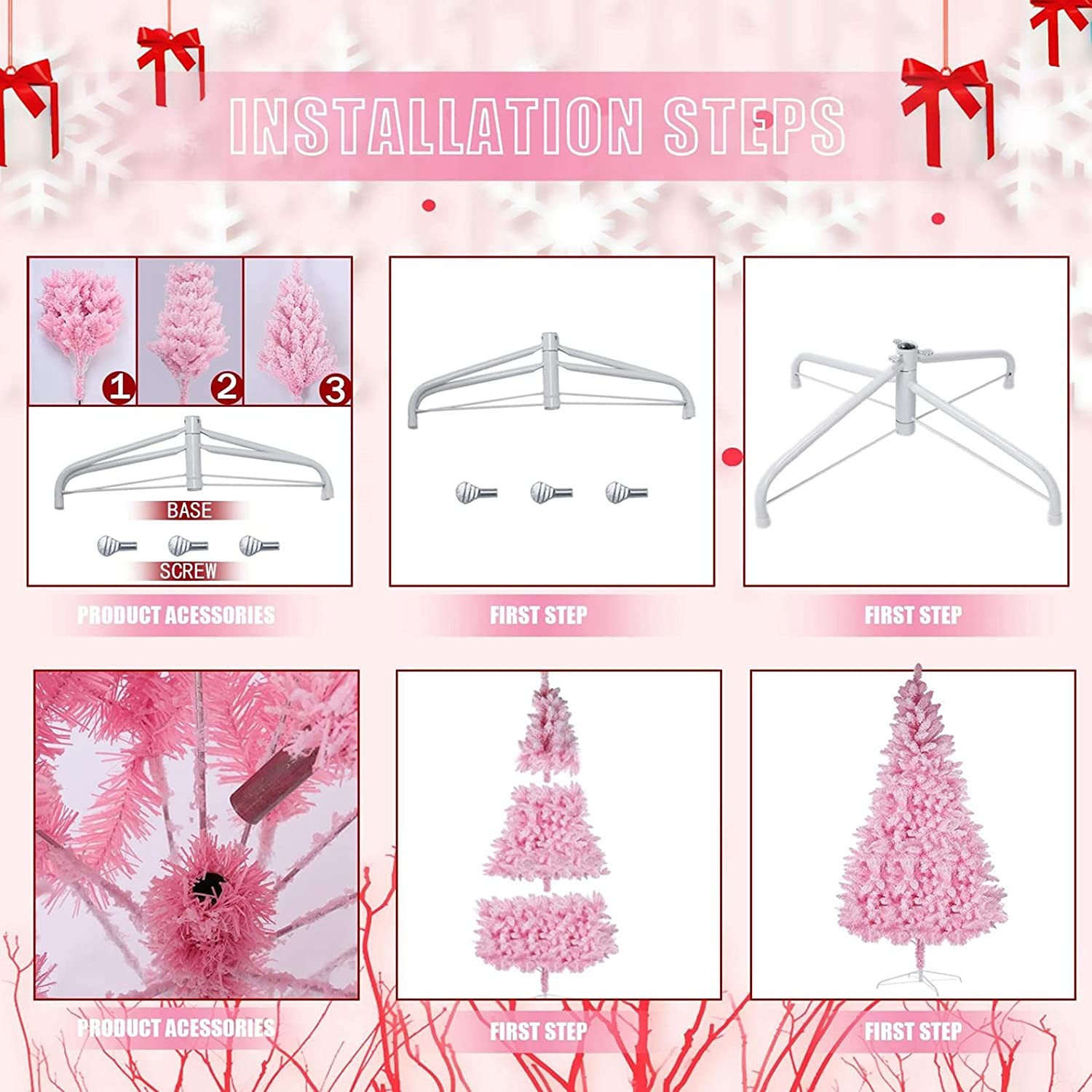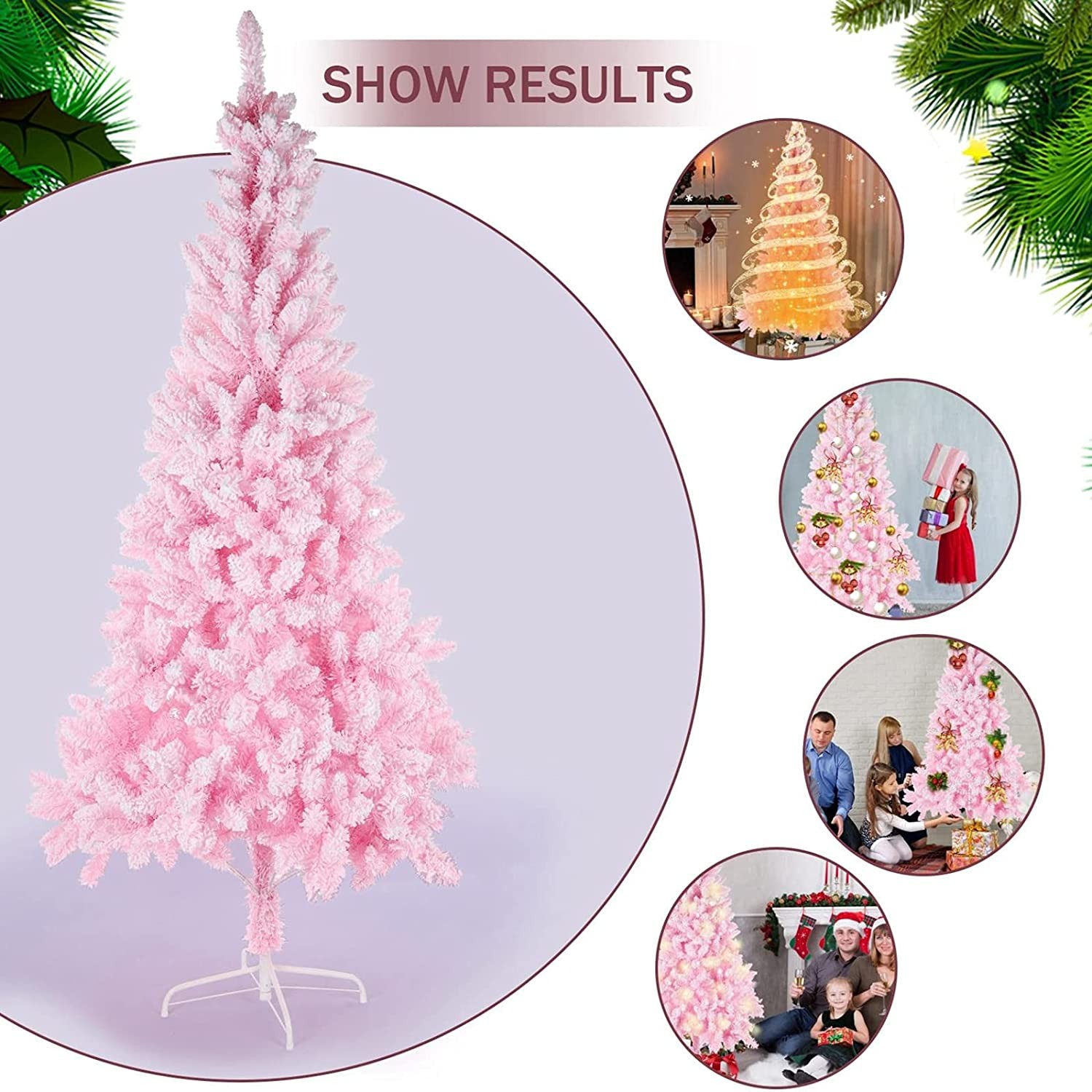 ??【Eye-catching Color】 - Designed with all-pink color. Cherry blossom color differs from ordinary green, snow-white, and bright pink, which gives the tree an eye-catching beautiful look. It will create a dream world for those who maintain the love of pink. There's no extra holiday decorations provided on this tree with full and plush appearance. You can use your imagination and unite your family and friends together to decorate the Christmas tree.