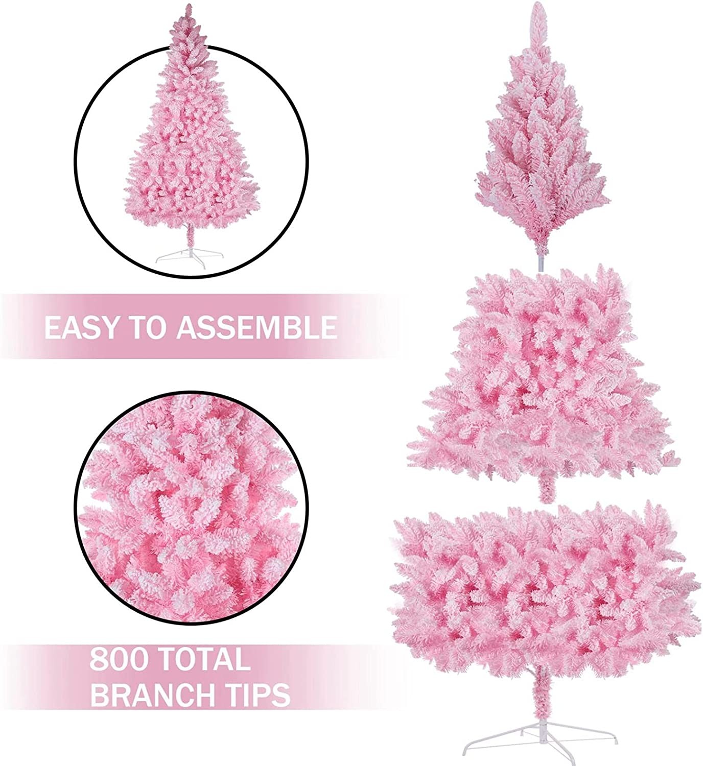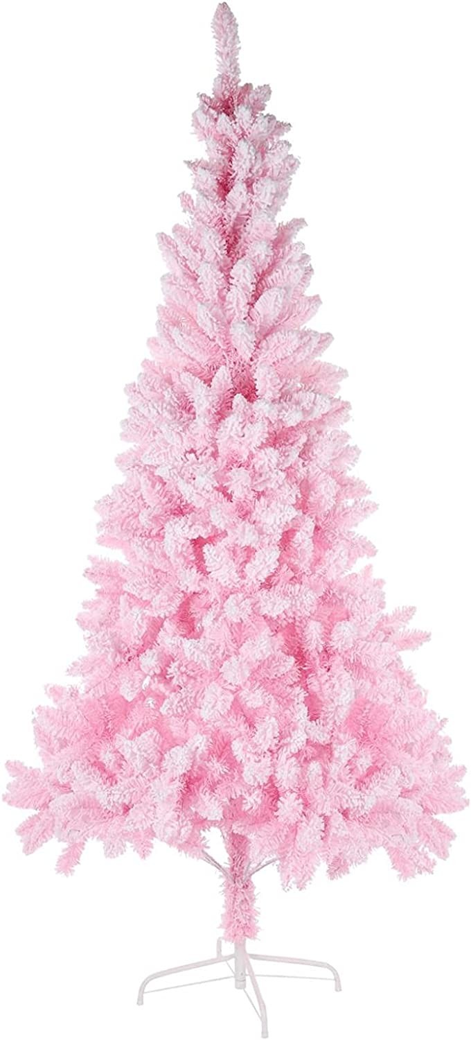 DFDGBD 7FT Premium Snow Flocked Artificial Holiday Christmas Tree for Home, Office, Party, Indoor Outdoor Decoration w/ 800 PVC Branch Tips, Easy Assembly, Metal Stand & Detachable Base, Pink