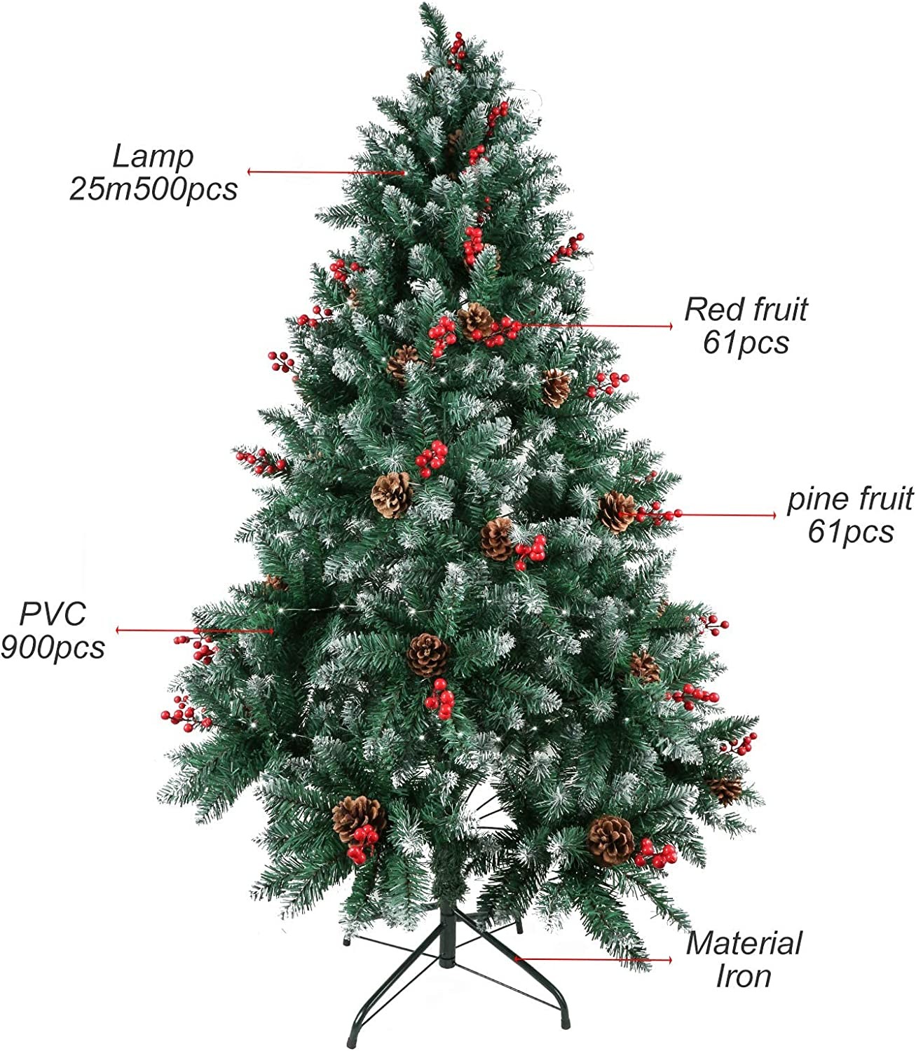 ?Eco-friendly Material: The blades of our christmas tree are made of high quality PVC material, which enhanced the waterproofness and makes the tree looks more real and more full, but also add the anti-crush capacity to the tree.The all-metal trunk branches and iron frame used in the Christmas tree can definitely provide a firmer support and ensure stability for the Christmas tree. It can serve you for a long time.