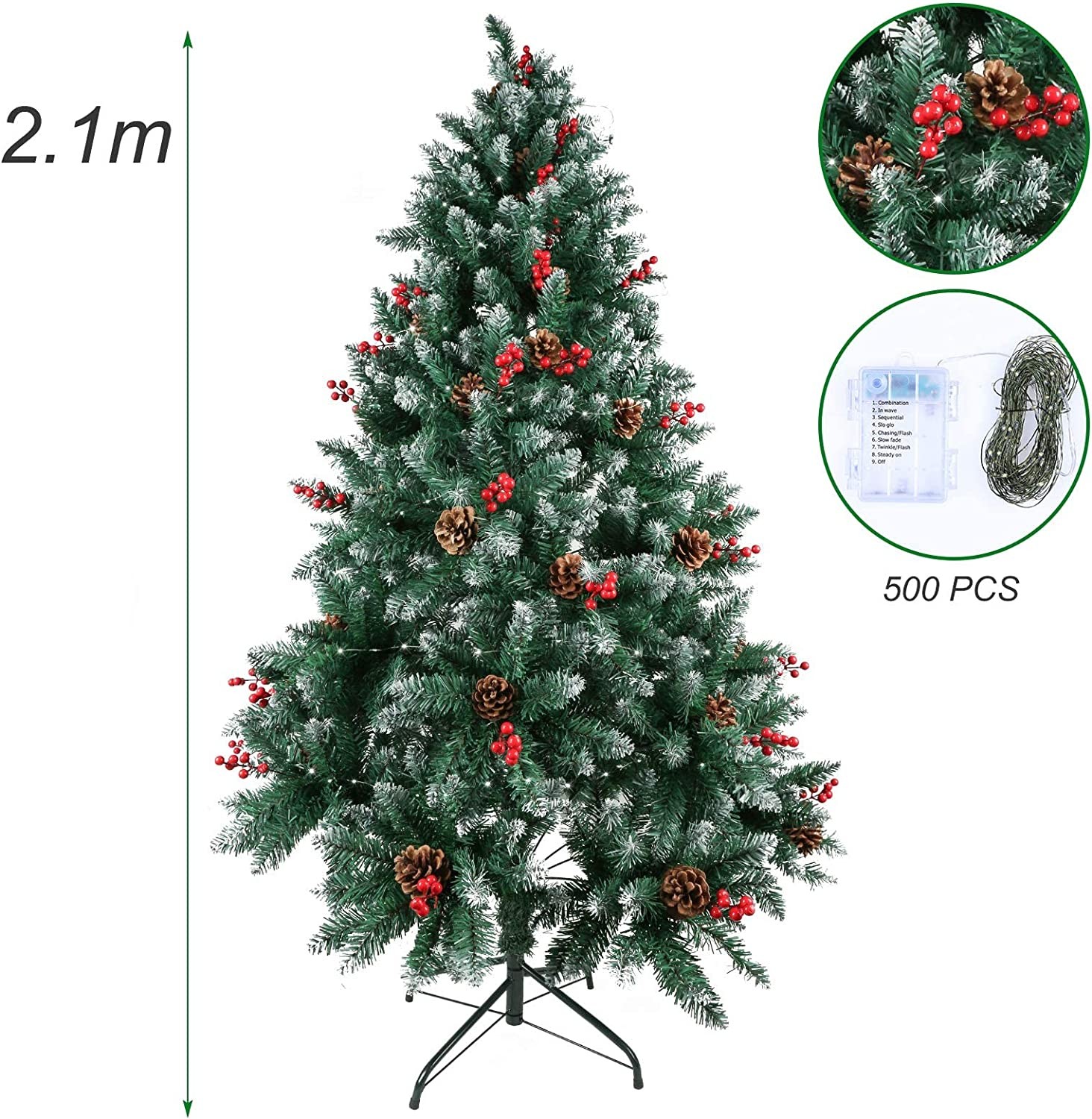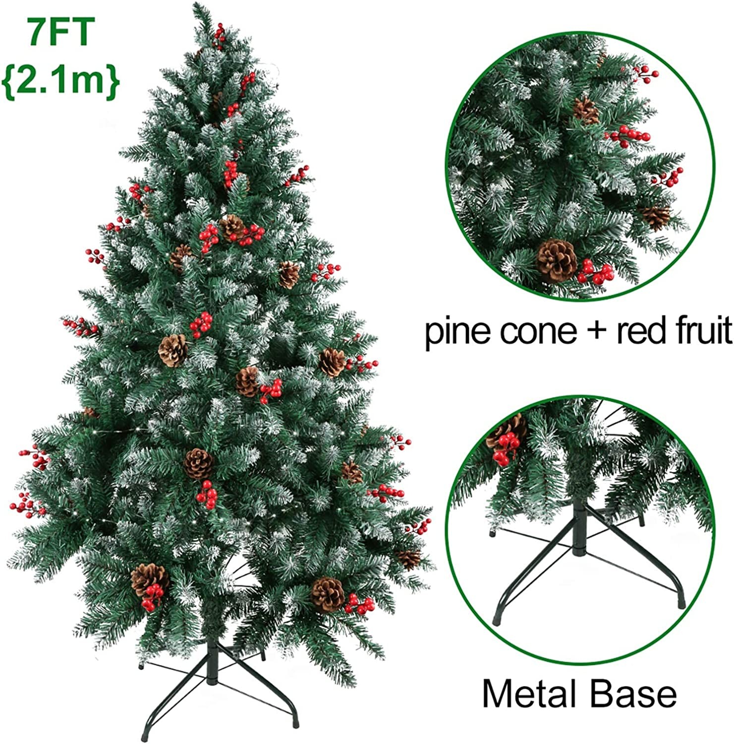 ?Realistic Appearance: Our artificial branches look super lifelike. With 900 carefully crafted branching techniquesW +red cones and pine cones , This 2.1M high Christmas tree can attract people's attention in a variety of scenes during this period.