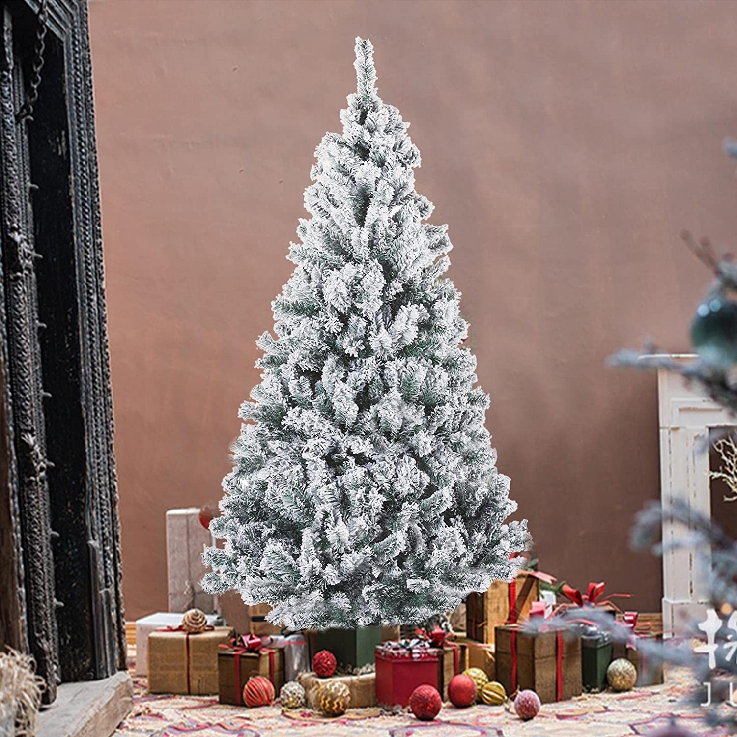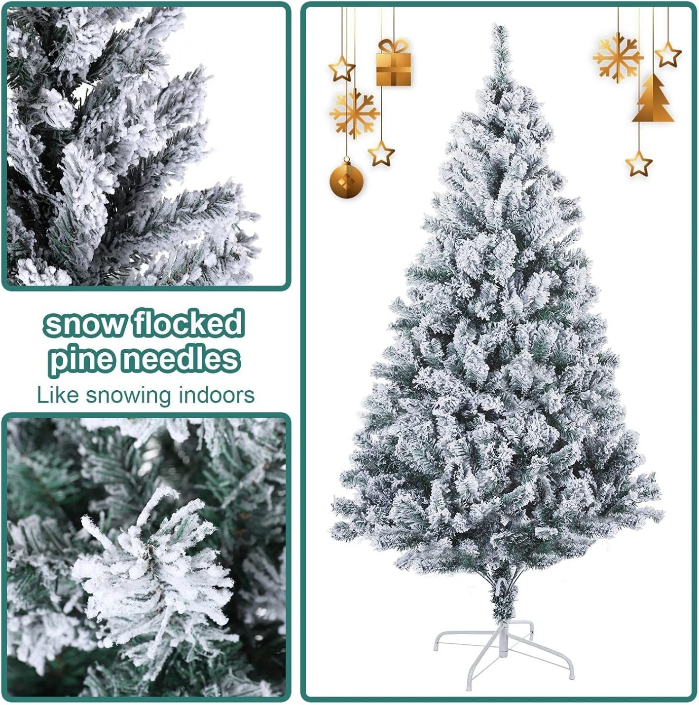 6Ft Christmas Tree【6 FT CHRISTMAS TREE】Our 6 ft Christmas tree with 750 branches tips, seamlessly fall to form the tree shape, create the appearance of a full-bodied spruce Xmas tree for a life-like look. The Christmas tree offers plenty of space for ornaments and let you easily decorate lights and all pretty ornament, filling the room with Christmas cheer Pencil Christmas Tree【SNOW TREE WITH PINE CONES】Our Christmas tree equipped with flocked are realistic in looks that just like an outdoor tall pine tree standing in the snow. This snow Xmas tree is an attractive addition for your indoor and outdoor decoration! Pencil Christmas Tree 【DENSE PVC TIPS】The branches of our Christmas tree are made from non-flammable PVC material, dense, eco-friendly and odorless. The PVC material also can add the anti-crush capacity to the tree, our tree with exquisite craftsmanship can serve your family longer festival time. Arboles De Navidad【STURDY METAL STAND】Our snow Christmas tree is equipped with a sturdy metal stand which is stable and durable for a long lifespan. Compared with a cheap plastic stand, our metal stand will provide the tree with greater support that keeps your tree standing straight in your room 6 Ft Christmas Tree【EASY INSTALLATION】Our artificial Christmas tree is very easy to assemble and dismantle, just put sections and metal stand together and comb branches so that the tree will achieve the best effect. You will finish the assembly of this tree only requires few steps, saving a lot of time. If you do not need it, you can fold it up for storage