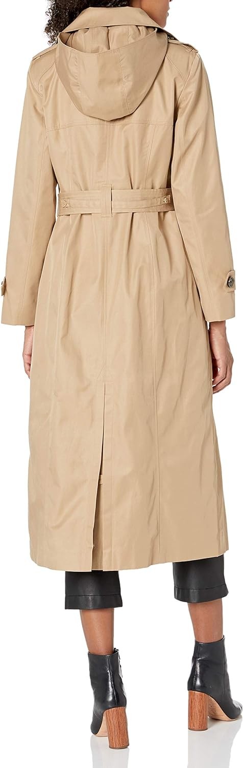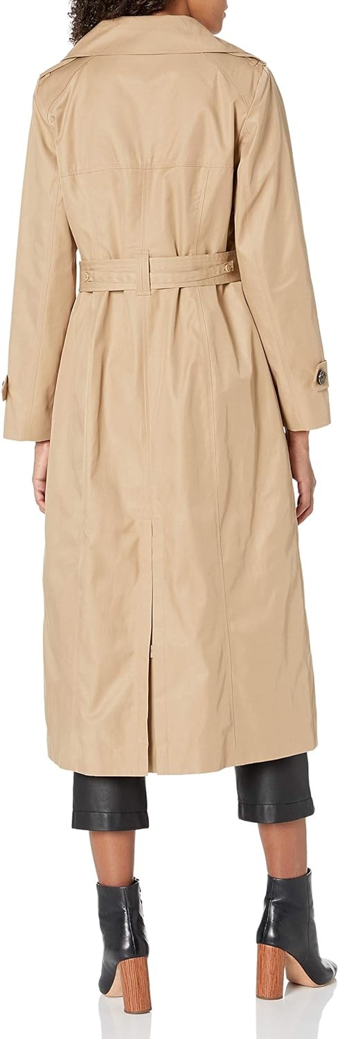 LONDON FOG Women's Single Breasted Long Trench Coat with Epaulettes and Belt