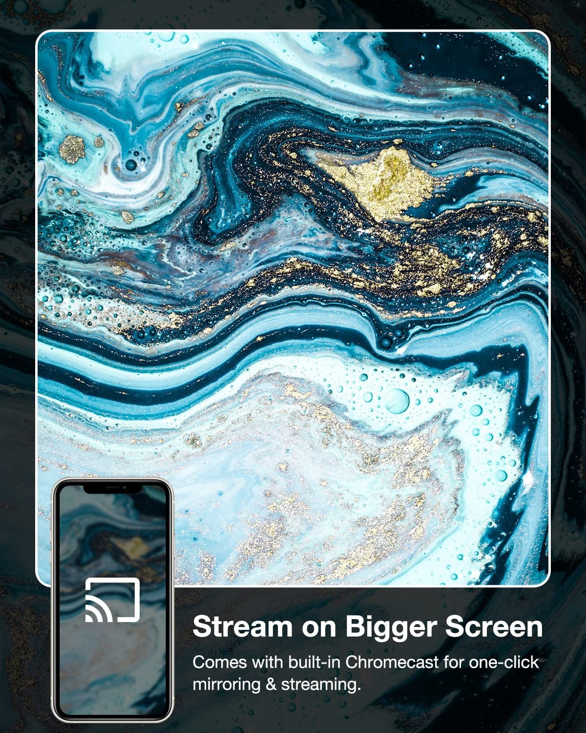 Licensed Fun by Android tv & Netflix: From YouTube, Netflix, Amazon Prime Video, to Disney+ and more, this Android tv powered bluetooth projector lets you stream whatever you like right out of the box. Mini in Size, Big in Power: Pokitter Go Pro has a smaller footprint than most 1080p wifi projectors. And It’s portable, lightweight, and bright enough (up to 200 ANSI lumens) for vibrant, cinema-like viewing even outdoors. This coconut-sized mini projector can deliver precise color accuracy and incredible contrast on a max 120-inch screen space. Setup Is a Snap: Set up your palm-sized theater to wherever you like. Use the intuitive remote to zoom (from 50%~100%), and adjust its four points. Automatic vertical keystone correction will adjust the projected screen up to 40 degrees to give you the best viewing experience. Do More with Google Assistant: Press the Google Assistant button and ask Google to search for the latest blockbuster, stream shows or open multiplayer games. Have it dim the lights by connecting smart home devices. Or ask it questions and see the answers right on the big screen. Maximum Connectivity: You can wirelessly cast entertainment from any Apple/Android device, thanks to its built-in Chromecast and wireless connectivity capacity including 2.4/5Ghz WiFi and Bluetooth 5.1. Its built-in dual 5W speakers produce dynamic audio that fills your room. And for more immersive viewing, simply pair your home theater projector with wireless or wired Hi-Fi sound bars or headphones.