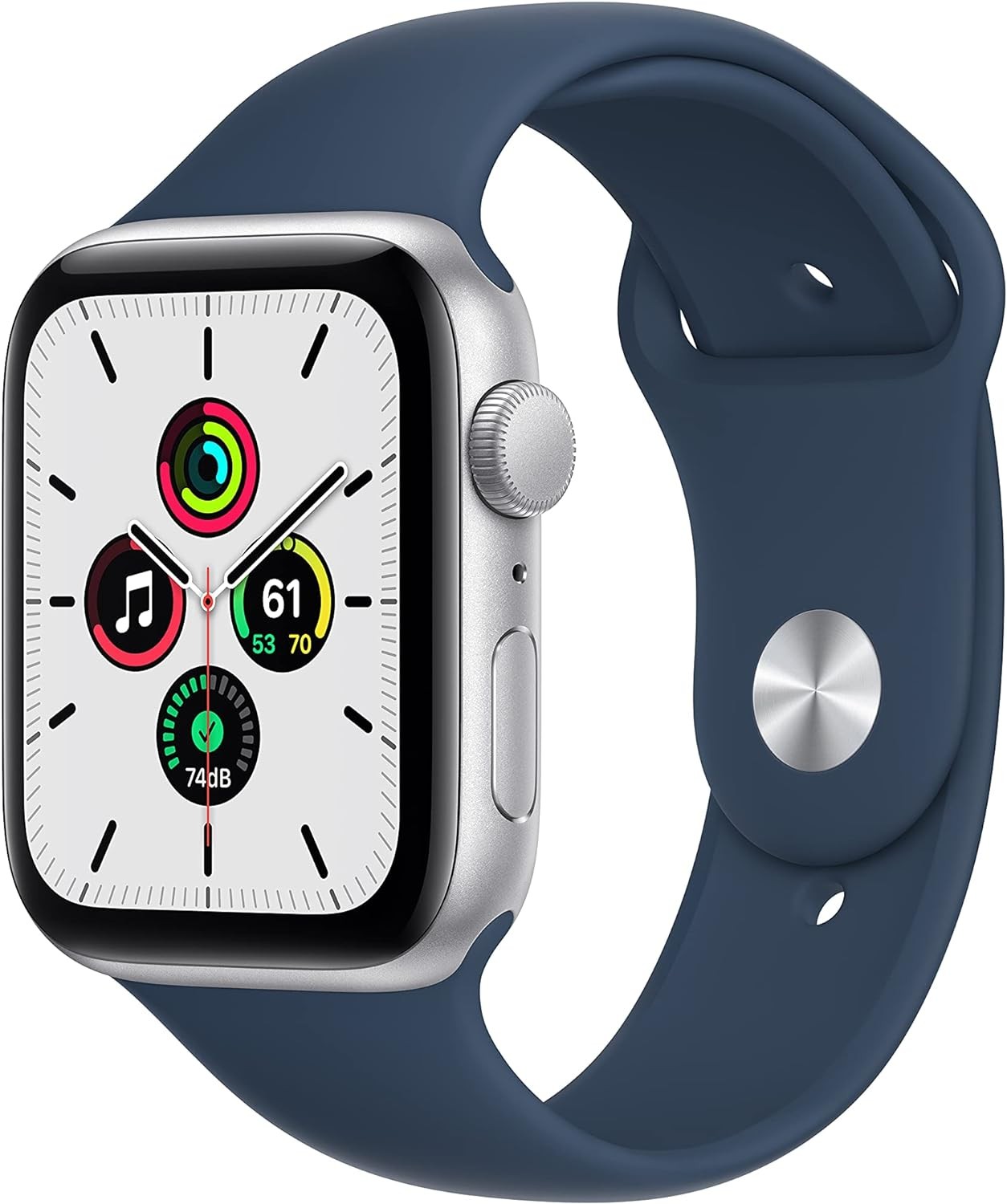 Apple Watch SE (Gen 1) [GPS 44mm] Smart Watch w/Silver Aluminium Case with Abyss Blue Sport Band. Fitness & Activity Tracker, Heart Rate Monitor, Retina Display, Water Resistant