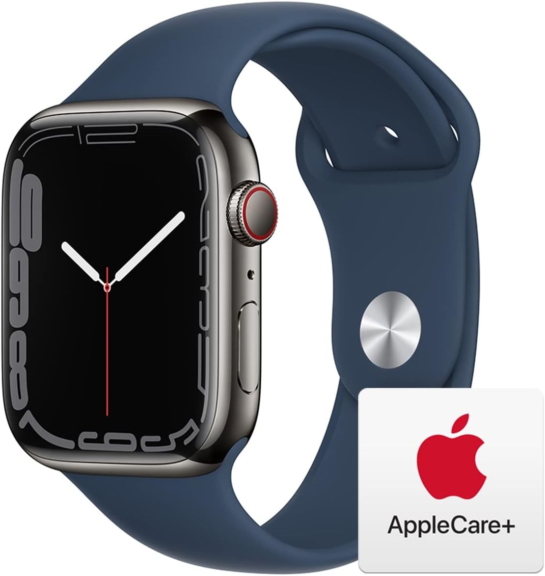 WHY APPLE WATCH SERIES 7 — The most advanced Apple Watch features powerful health innovations like sensors and apps to measure your blood oxygen and take an ECG. The larger, Always-On Retina display makes it easier to use and read. The most durable Apple Watch. Charges faster so you can get going quicker. CELLULAR CONNECTIVITY — Send a text, make a call, stream music and podcasts, use Siri, or call for help with Emergency SOS. Cellular lets you do it all without your iPhone nearby. And with Family Setup, kids and parents who don’t own an iPhone can enjoy the fun, safety, and connectivity of Apple Watch. EASILY CUSTOMIZABLE — Available in a range of sizes and materials, with dozens of bands to choose from. Change up your look by switching your band or by customizing your watch face in millions of ways. INCREDIBLE DURABILITY — Built to be tough. It’s more crack resistant, it’s dust resistant, and it’s swimproof. AppleCare+ for Apple Watch extends your coverage with additional service and support for one year from your AppleCare+ purchase date 24/7 priority access to technical support offers troubleshooting for Apple Watch, watchOS, and Apple-branded Watch apps Express Replacement Service provides a replacement before you return your device Hardware repair coverage, including parts and labor, is available from Apple-certified technicians in-person or by mail
