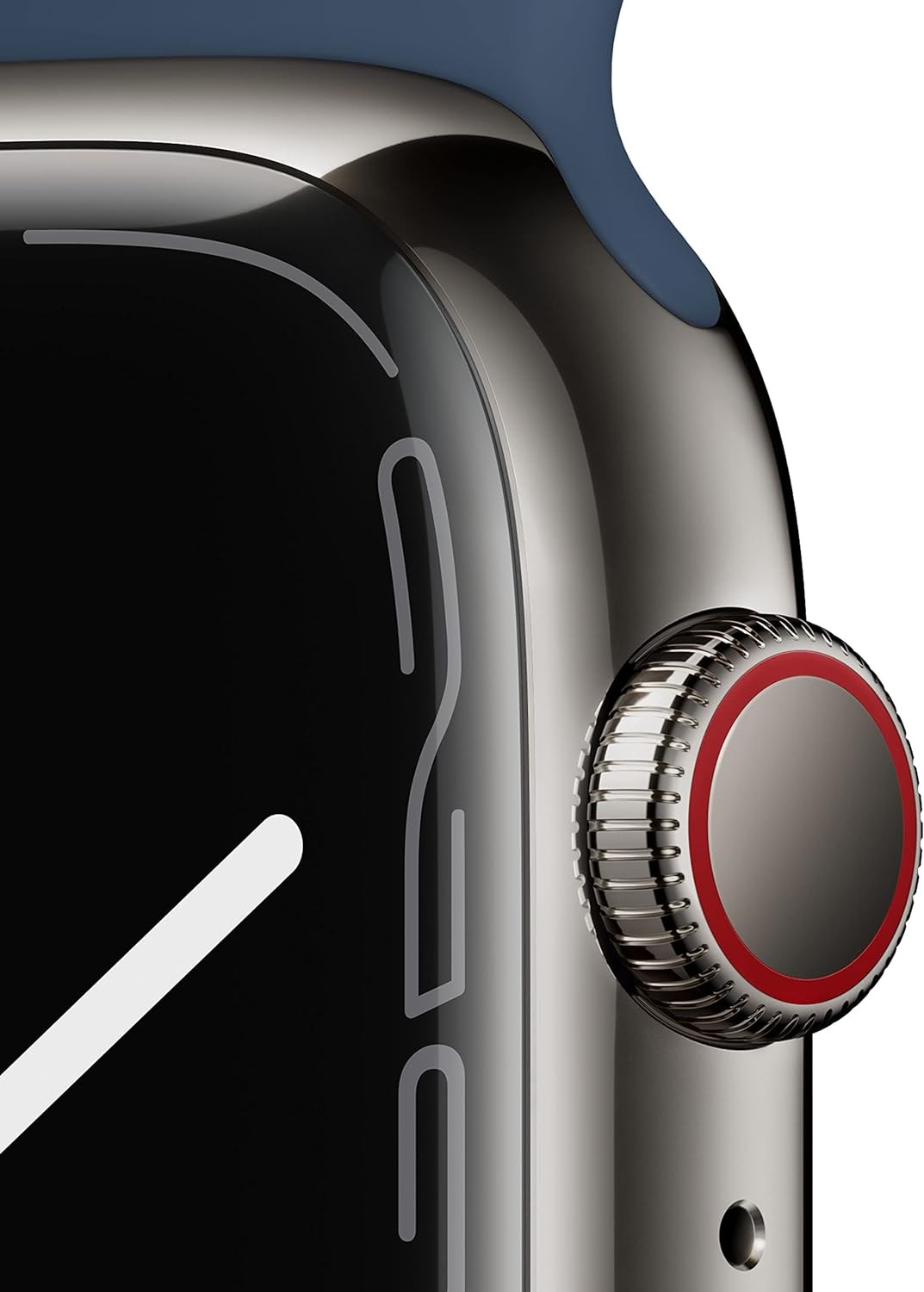 Apple Watch Series 7 [GPS + Cellular 45mm] Smart Watch w/Graphite Stainless Steel Case with Abyss Blue Sport Band. Fitness Tracker, Blood Oxygen & ECG Apps, Always-On Retina Display, Water Resistant