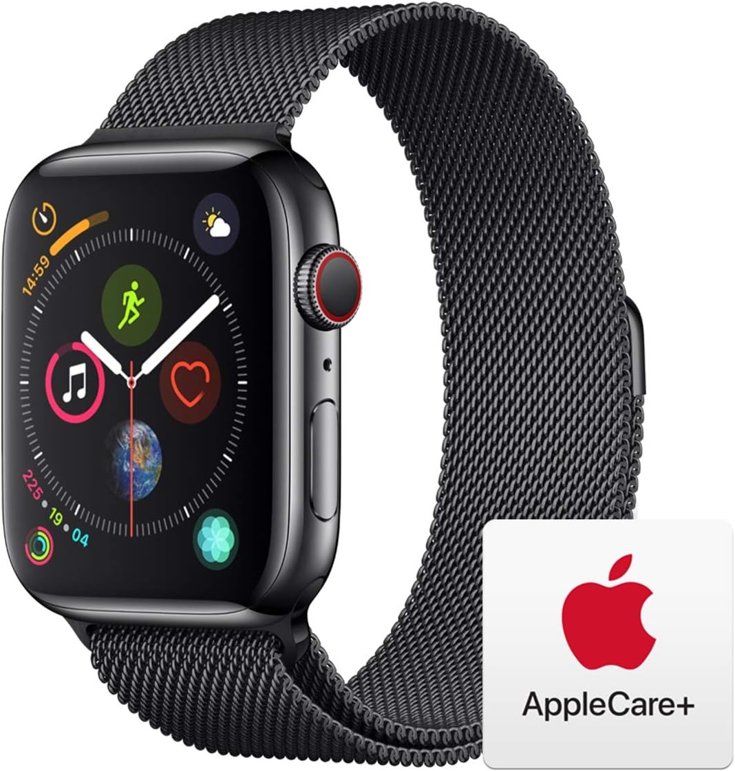 Apple Watch Series 4 (GPS + Cellular, 44mm) - Space Black Stainless Steel Case with Space Black Milanese Loop with AppleCare+ Bundle