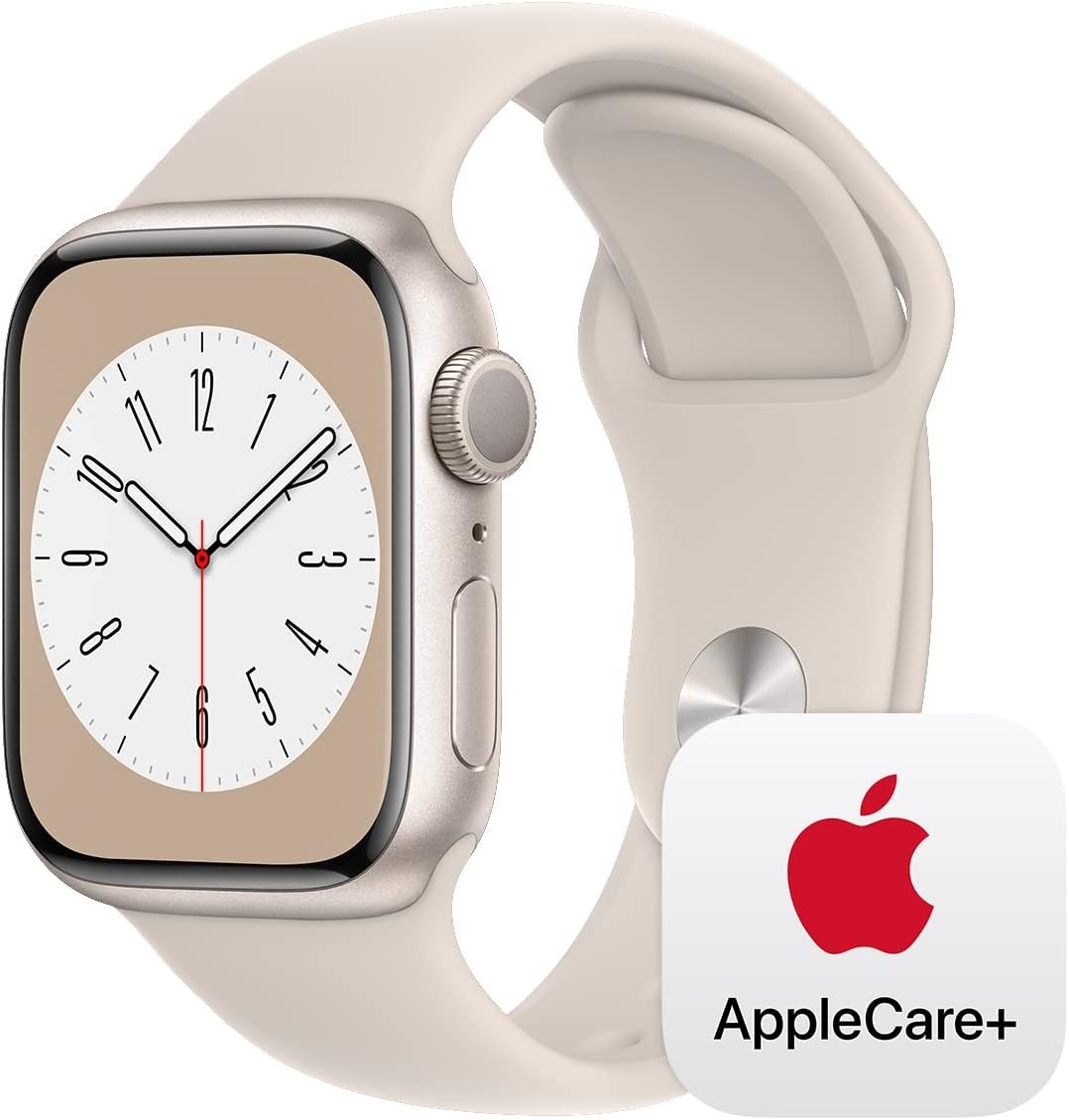 Apple Watch Series 8 [GPS 41mm] Smart Watch w/ Starlight Aluminum Case with Starlight Sport Band - M/L with AppleCare+ (2 Years)