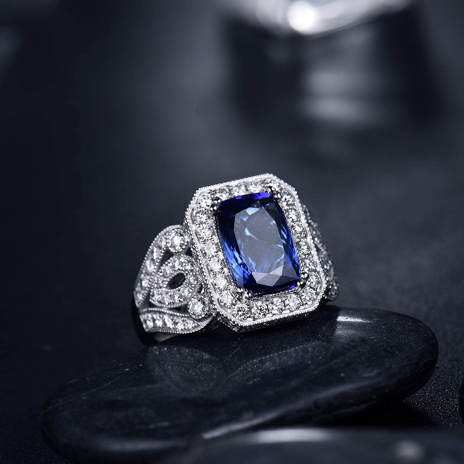 Lanmi Women's Tanzanite Ring Super Promotion: Up to 30% Off , Limited Time Offer !!! Tanzanite:Genuine Natural Carat Weight:3.80CT Cut:Cushion(8x11mm) Clarity:Very Good Diamonds:Natural Diamonds Carat Weight:2.17CT Cut:Round Clarity:SI Color:G-H Metal Type:Solid 14K Gold-White Gold Weight:10.45g Style:Diamond Tanzanite Ring, Perfect for All Occasions:Anniversary Engagement Party meeting Dating Wedding Daily Wear etc