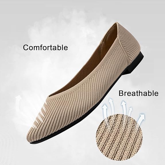• Material:Womens flat shoes upper with high quality knit, breathable and comfortable to wear. Durable rubber sole is non-slip and firm. Memory foam insole relieves pressure on the feet, so you won't feel tired after long hours of standing or walking, comfortable all day long.