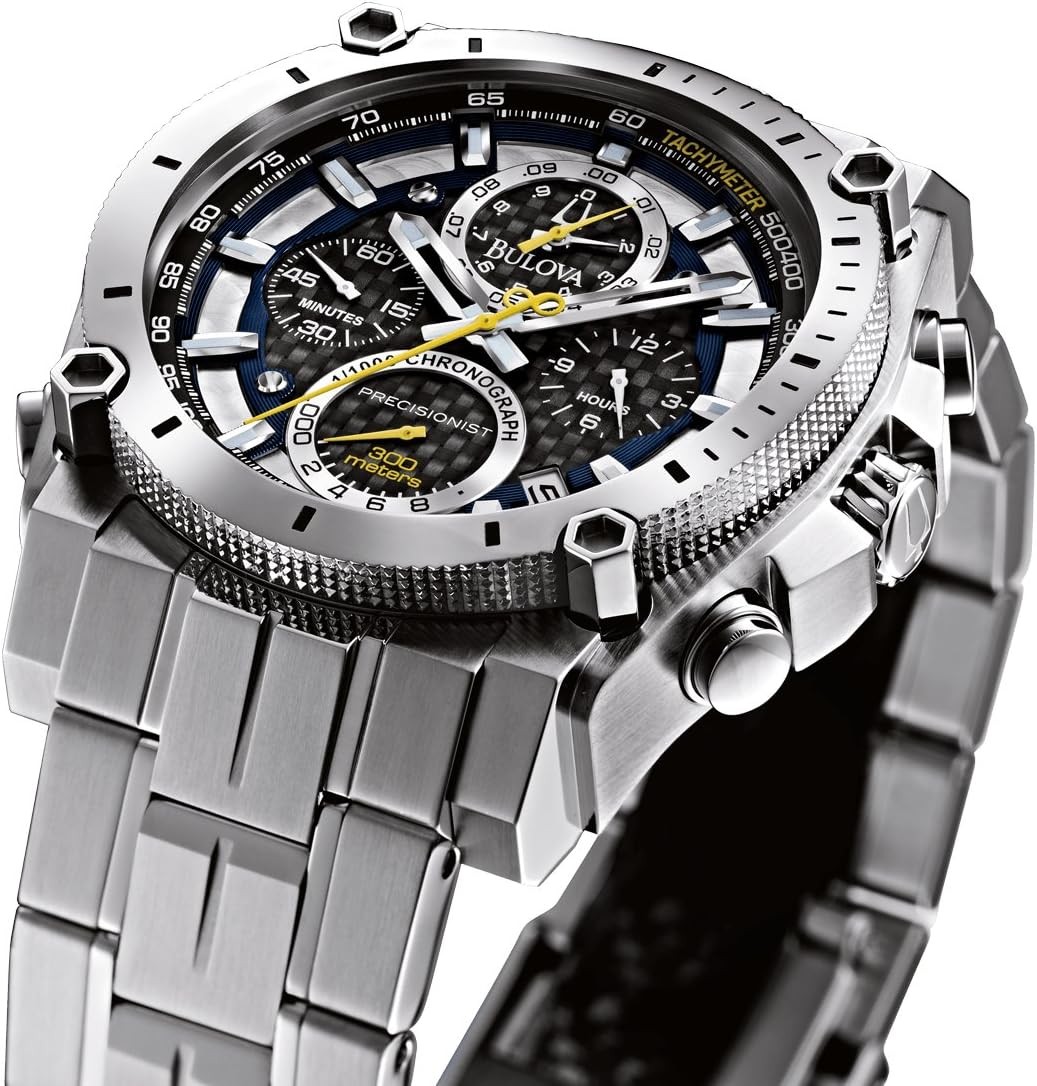 Bulova Men's Icon High Precision Quartz Chronograph Watch, Curved Mineral Crystal, 300m Water Resistant, Continous Sweeping Secondhand, Luminous Markers