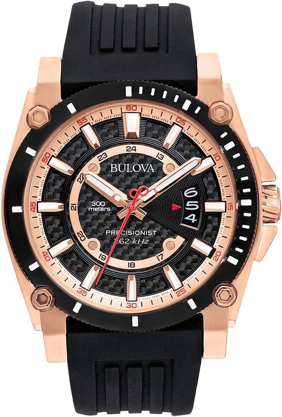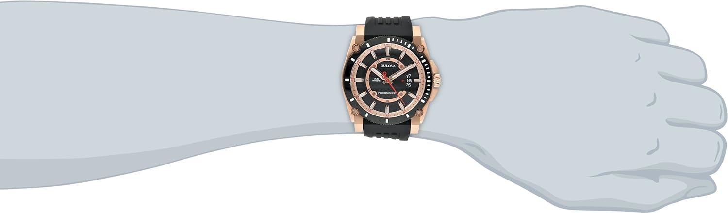 Bulova Men's Icon 3-Hand Calendar Watch with Black Polyurethane Strap, Precisionist, Luminous Markers, 300M WR