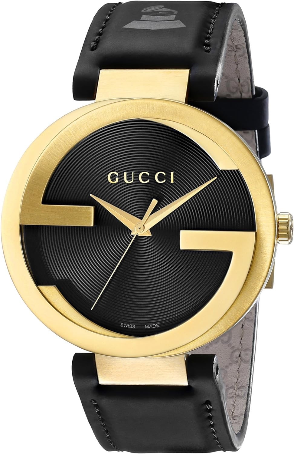 Special Edition Interlocking Latin Grammy Watch. Watch is completed with a high quality Swiss Quartz Movement, Yellow PVD case with brushed and polished finishing. Case back is complete with Latin Grammy logo and inscription. The straps on the black dial are done in black leather, Grammy logo at 12 O'clock and signature GG on the leather lining. The silver dial is done in a white rubber strap, Latin Grammy Logo at 12 o'clock and signature GG on the leather lining.