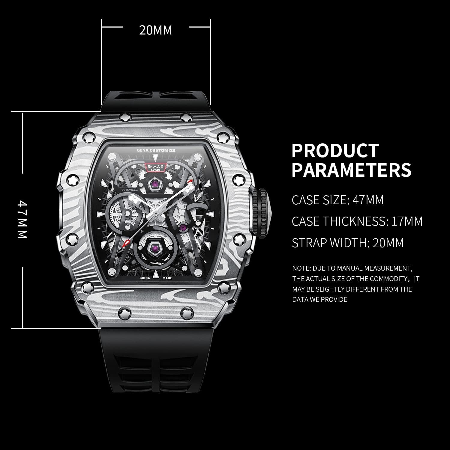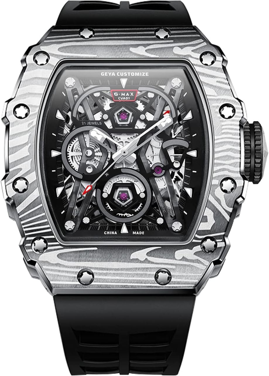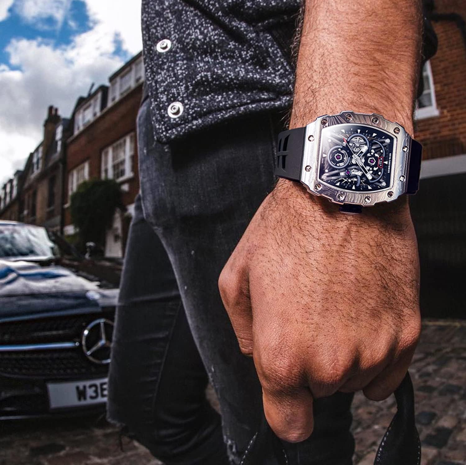 Redhai Automatic Mechanical Watch Skeleton Stainless 50M Waterproof Anti Shock Casual Diver Men Wrist Watch Sterling Watches Chronograph Analog Business Casual Fashion Adjustable Silicone Band