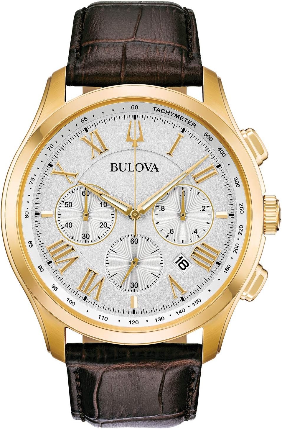 Bulova Men's Classic Wilton 3-Hand 21-Jewel Watch, 60 Hour Power Reserve, Luminous Hands, Open Aperture, Roman Numeral Markers Domed Sapphire Crystal, 43mm