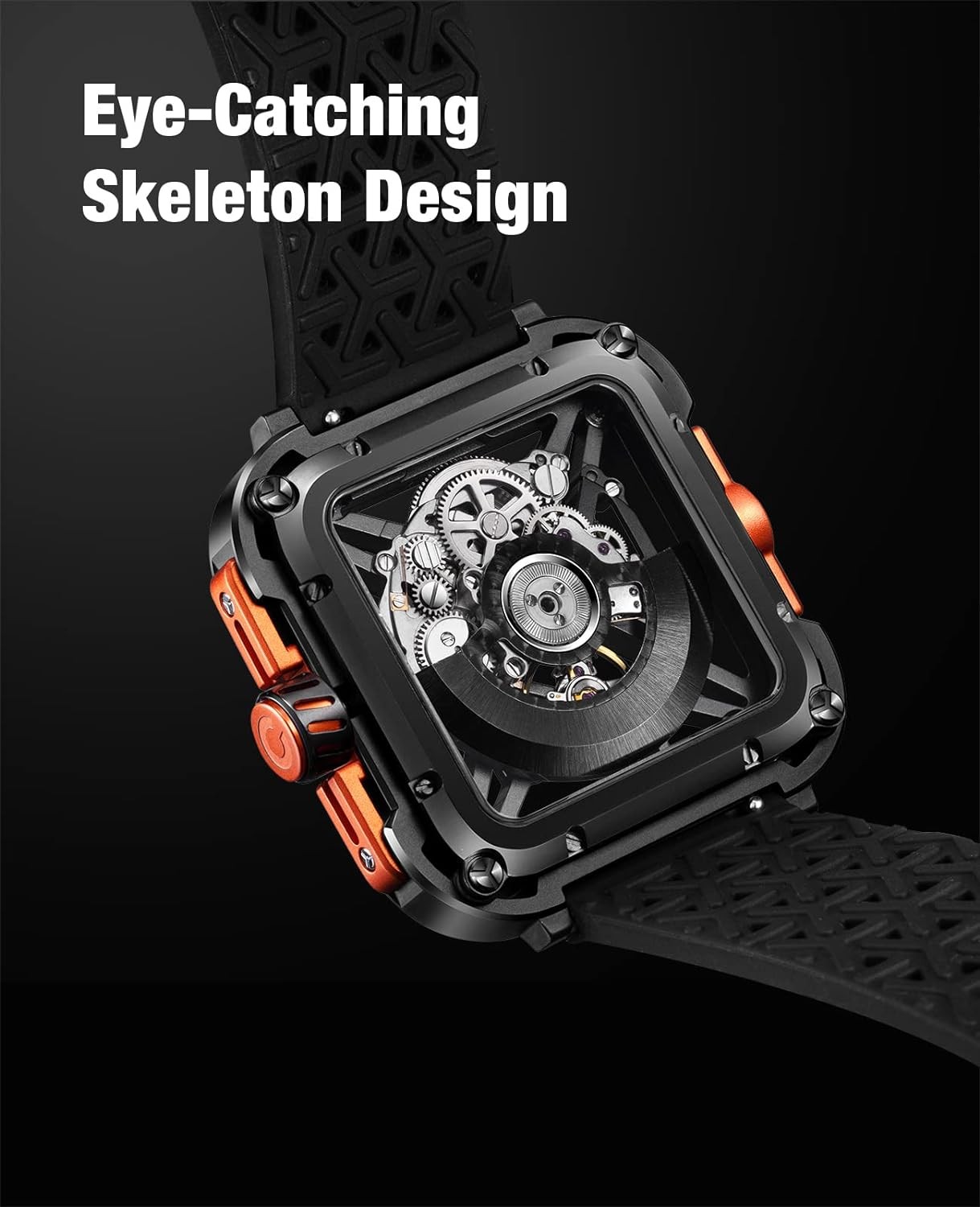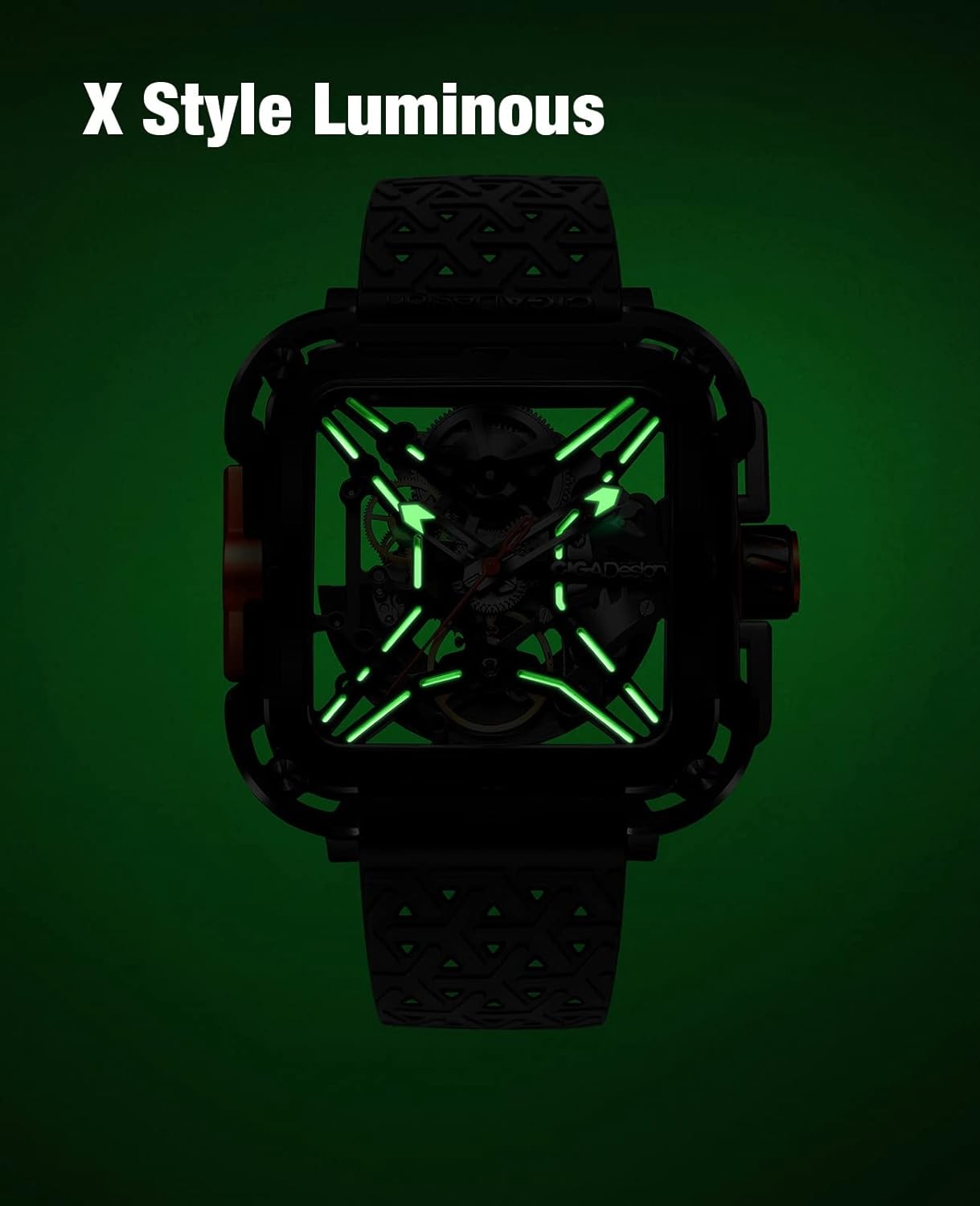 CIGA Design Mechanical Automatic Watch X Series SUV Inspired Anti-Shock Design Sapphire Crystal Analog Skeleton Watches with Silicone and Nylon Strap Fashion Wrist Accessories for Men and Women