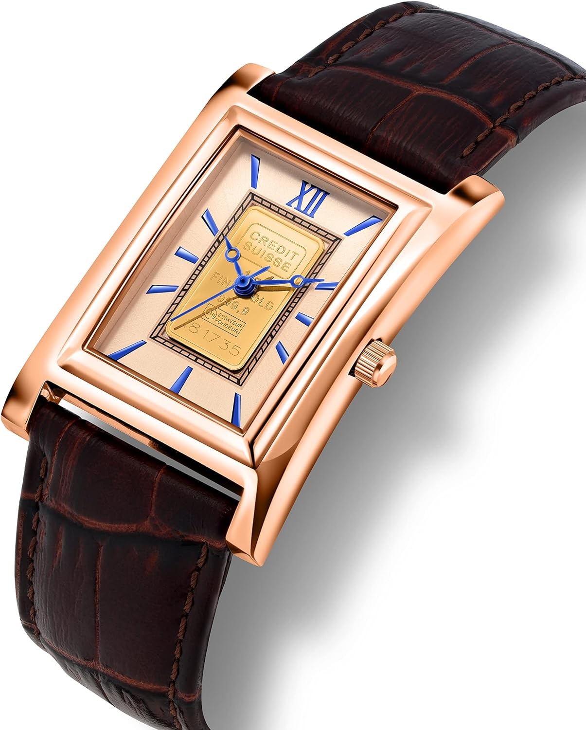 Stauer Alta Gold Ingot Swiss Watch for Men – Swiss-Made Gold Watch w/Genuine Leather Watch Bands – Swiss Movement Analog Watch – Rose Gold-Finished Watch Case – Luxury Gift for Men