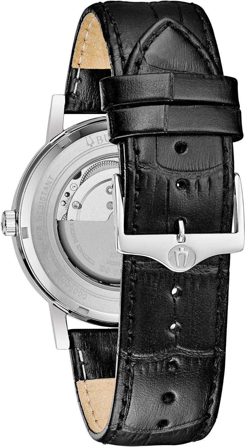 Bulova Men's Classic American Clipper 3-Hand Automatic Leather Strap Watch, Day Date Calendar, 40 Hour Power Reserve, Exhibition Case Back, 42mm